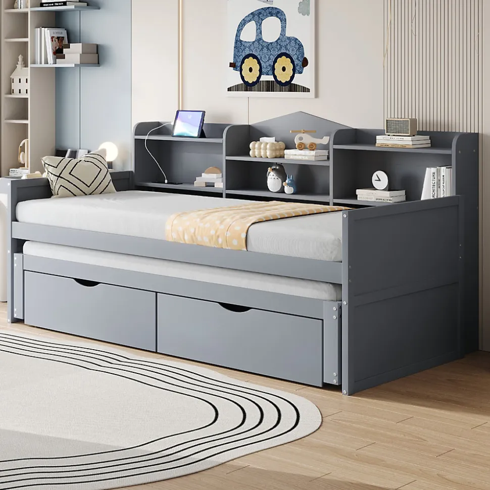 - 【Rangement Pratique】Le canapé-lit en bois massif intègre plusieurs compartiments et deux grands tiroirs, offrant un espace optimal pour ranger vos affaires et garder votre chambre organisée au quotidien.