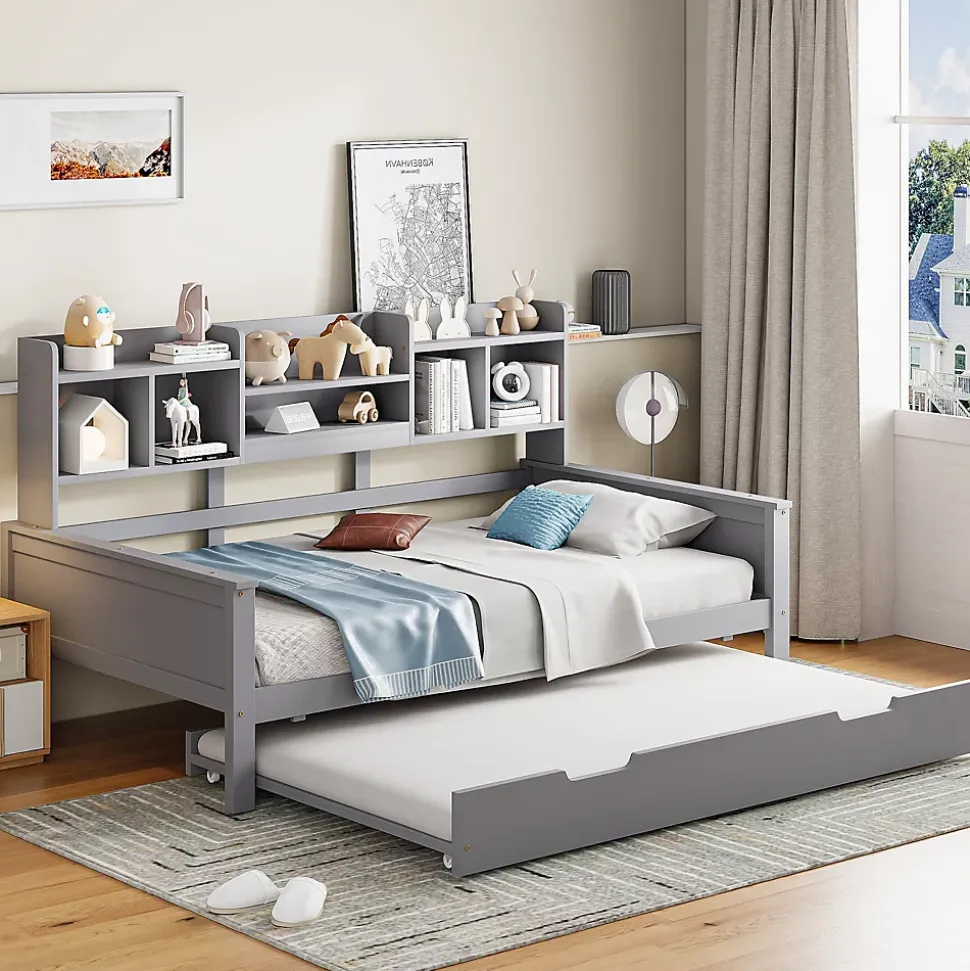 ▶ ▶ Détails ▶────────────────● Type de produit : Lit gigogne● Dimensions du produit : 200 x 97 x 110 cm● Dimensions du lit extensible : 90 x 190 cm● Couleur : Gris● Matériau du produit : Bois de pin + Contreplaqué + MDF● Poids total du produit : 44,2 kg● Capacité de poids : 120 kg● Épaisseur de matelas recommandée : 8-12 cm● Montage : Montage complet nécessaire / Montage partiel possible● Poids total de l’emballage : 48,2 kg● Nombre de lattes : 26● Outils supplémentaires requis : Tous les outils sont inclus (tournevis)● Évitez d’utiliser des outils électriques : Oui● Nombre de colis : 2► Remarques ►※ Ce produit est expédié en 2 colis, qui peuvent ne pas arriver en même temps. Merci de patienter.※ En raison de la mesure manuelle, un écart de 2 à 3 cm peut se produire.※ Tous les images du produit sont prises avec des produits réels, mais en raison de l’éclairage et d’autres facteurs, des différences de couleur peuvent se produire. Veuillez vous référer au produit effectivement reçu.※ La longueur est la valeur avant et la largeur est la valeur des côtés. La taille exacte dépend de l’image.