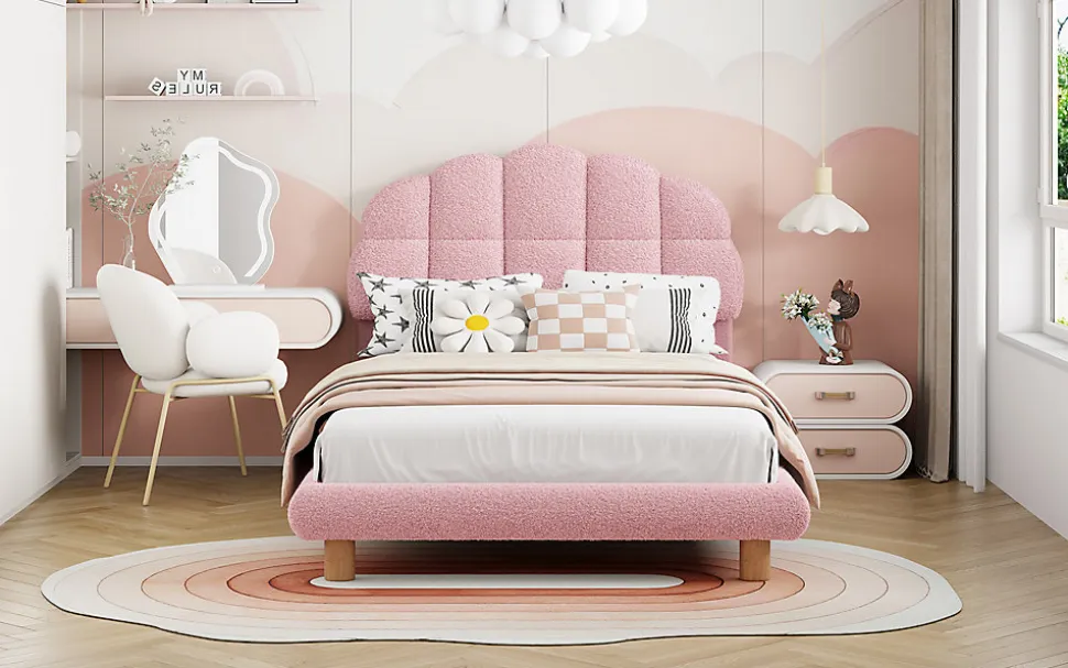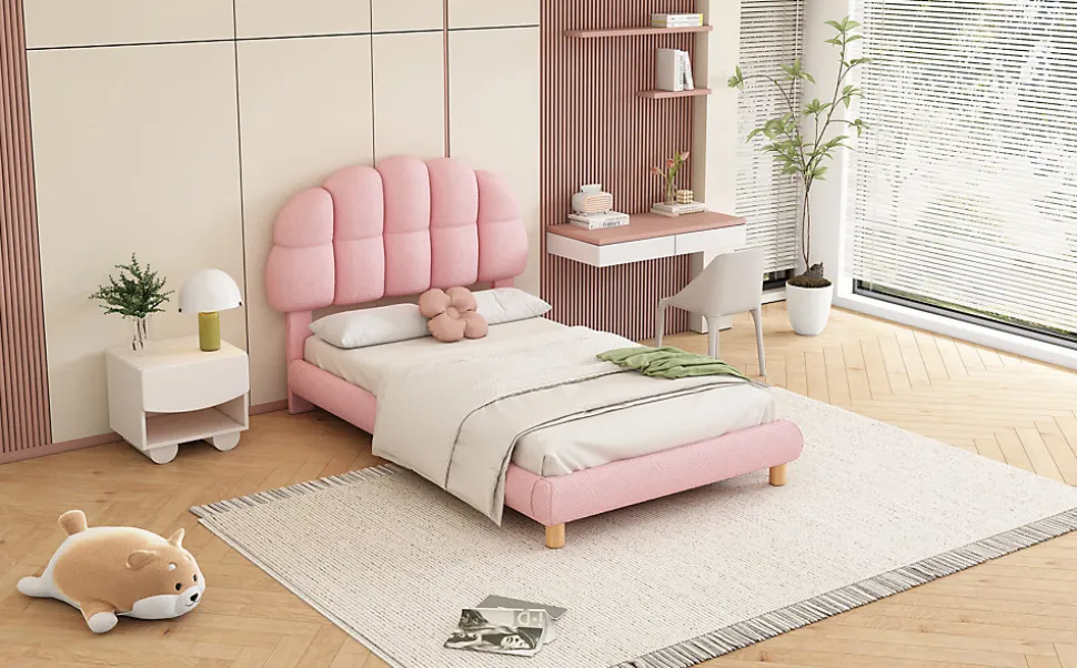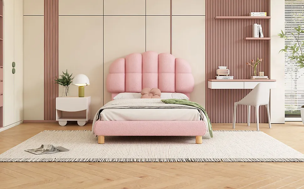 Lit Simple pour Enfant, Lit pour Jeune, Lit Rembourré, Sommier en Bois, avec Tête de Lit et Côtés RembourrésCe lit pour enfant allie confort et sécurité. Son design élégant et sa forme de tête de lit rembourrée assurent à votre enfant un sommeil paisible et sécurisé. Fabriqué à partir de matériaux de haute qualité tels que le Cercle Vlies et le MDF, il offre une surface douce et agréable. Ce lit est parfait pour les enfants de tous âges, avec une structure solide et fiable.Caractéristiques principales :Design élégant : Tête de lit semi-circulaire et couleurs pastel qui apportent douceur et beauté à la chambre.Matériaux de qualité : Fabriqué en Cercle Vlies et MDF, offrant une sensation de confort et une durabilité accrue.Construction robuste et sûre : Le cadre stable avec des pieds métalliques assure une solidité optimale.Hauteur modérée : Permet aux enfants de monter et descendre facilement du lit.Sécurité renforcée : La tête de lit rembourrée protège contre les chocs accidentels.Dimensions :Dimensions du produit : 205 x 98 x 99 cmDimensions du matelas : 90 x 200 cmHauteur totale : 99 cmPoids maximal supporté : 150 kgNombre de lattes : 12Recommandation pour l’épaisseur du matelas : 15-25 cmMontage requis : OuiOrigine : Chine