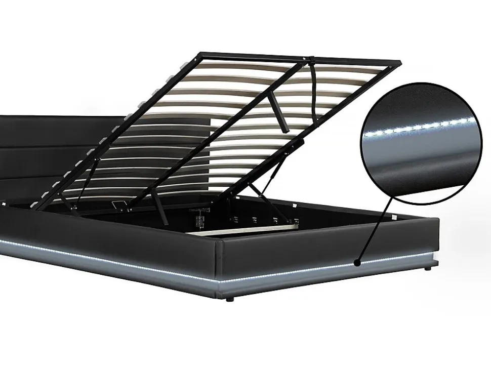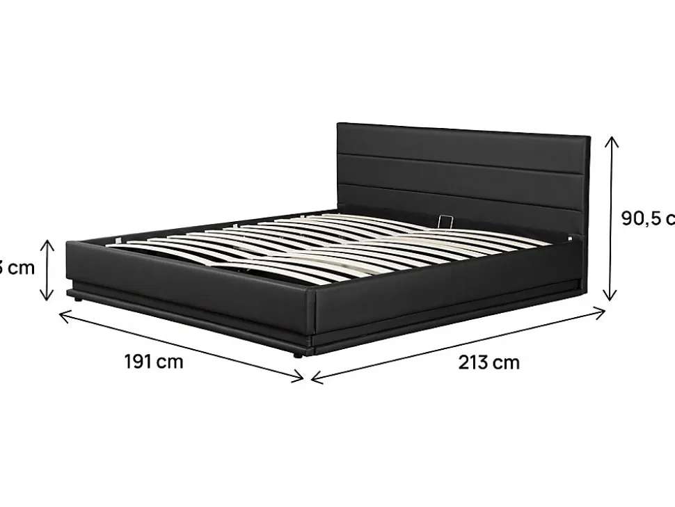 Lit avec LED « Anastasia » – Noir – Dimensions matelas : 180 x 200 cm – Dimensions lit : 194 x 214 x 90.5 cm – MDF + Bois + PVC – Tête de lit fournie – Coffre de rangement – Avec sommier à lattes – Matelas en option .Descriptif: Lit 2 places180 x 200 cmEclairage LEDTête de lit L191 x H90.5 cmPied de lit L191 x H33 cmDesign sobre et moderneSupporte jusqu’à 250 kgMatelas non fourni. Matière(Filtre): Simili cuir. Matières: Simili cuir. Structure: bois. Couleurs: noir. Finition: Led. couleur (filtre): Noir. Dimensions: 191 x 213 x 91 cm. Dimensions du couchage: 180×200 cm. Dimensions (Filtre): 180 x 200 cm. Sommier: inclus. Sommier: 90 x 5.5 x 1 cm – Bois – Amovibles – 26 lattes. Coffres: 201 x 181 x 23 cm. pieds: 3 x 3 x 2.5 cm – Acier. Poids: 81 kg. Colisage: 4 colis : – 1,97 x 0,11 x 0,91 m, 16 kg – 2,14 x 0,07 x 0,365 m, 15,5 kg – 2,04 x 0,135 x 0,34 m, 26,5 kg – 1,95 x 0,11 x 0,25 m, 23,9 kg.