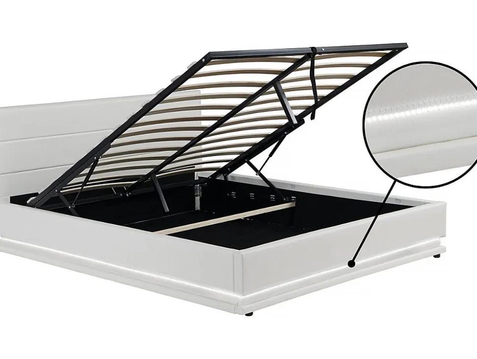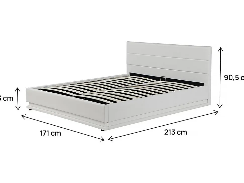 Lit avec LED « Anastasia » – Blanc – Dimensions matelas : 160 x 200 cm – Dimensions lit : 171 x 213 x 90.5 cm – MDF + Bois + PVC – Tête de lit fournie – Coffre de rangement – Avec sommier à lattes – Matelas en option .Descriptif: Lit 2 places160 x 200 cmEclairage LEDTête de lit L171 x H90.5 cm- Pied de lit L171 x H33 cmDesign sobre et moderneSupporte jusqu’à 250 kgMatelas non fourni. Matière(Filtre): Simili cuir. Matières: Simili cuir. Structure: bois. Couleurs: blanc. Finition: Led. couleur (filtre): Blanc. Dimensions: 171 x 213 x 90 cm. Dimensions du couchage: 160 x 200 cm. Dimensions (Filtre): 160 x 200 cm. Sommier: inclus. Sommier: 75 x 5 x 1 cm – bois – Amovibles – 24 lattes. Coffres: 141 x 191 x 23 cm. pieds: 3 x 3 x 2.5 cm – Acier. Poids: 74.5 kg. Colisage: 4 colis : – 1,71 x 0,1 x 0,905 m, 14,6 kg – 1,945 x 0,07 x 0,36 m, 26,4 kg – 2,045 x 0,135 x 0,34 m, 26,4 kg – 1,95 x 0,1 x 0,24 m, 22,75 kg.