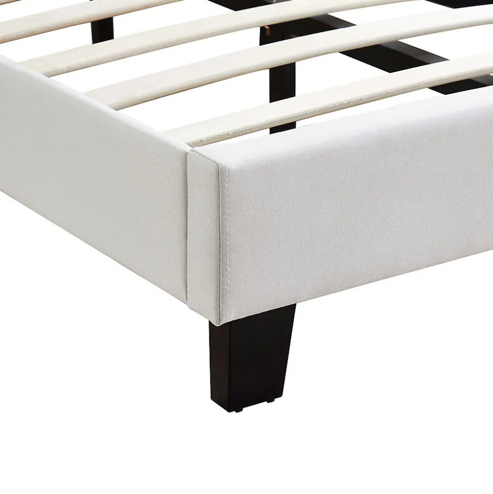 - La structure du lit est recouverte dun revêtement en tissu capitonné de coloris blanc