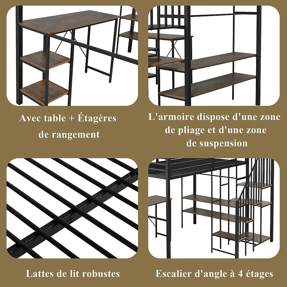 - 【Organisation des vêtements pratique】 Le côté ouvert dispose d’une zone avec tringle et étagères, permettant de ranger vêtements et accessoires sans portes, offrant un accès rapide et une chambre plus fonctionnelle.