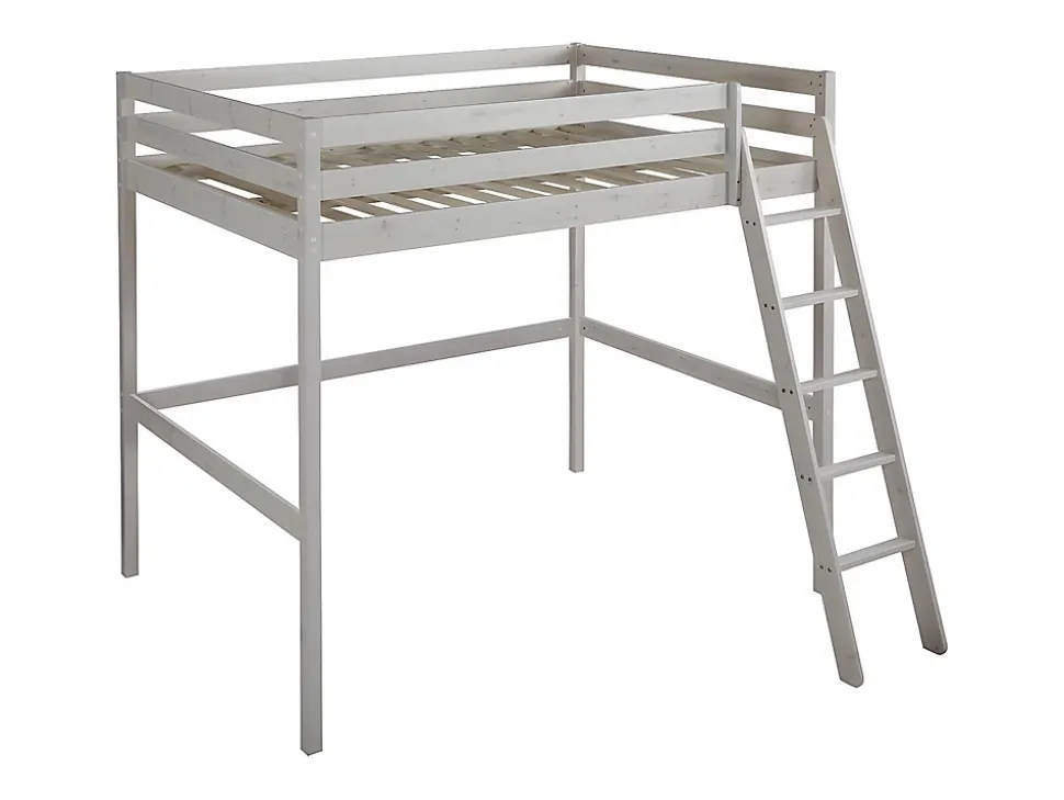 - Lit mezzanine 140 x 190 cm – Structure : Pin massif – Coloris : Blanc – Dimensions : L198 x P203,5 x H196,8 cm – Le lit mezzanine GEDEON II, la solution efficace pour un astucieux gain de place !