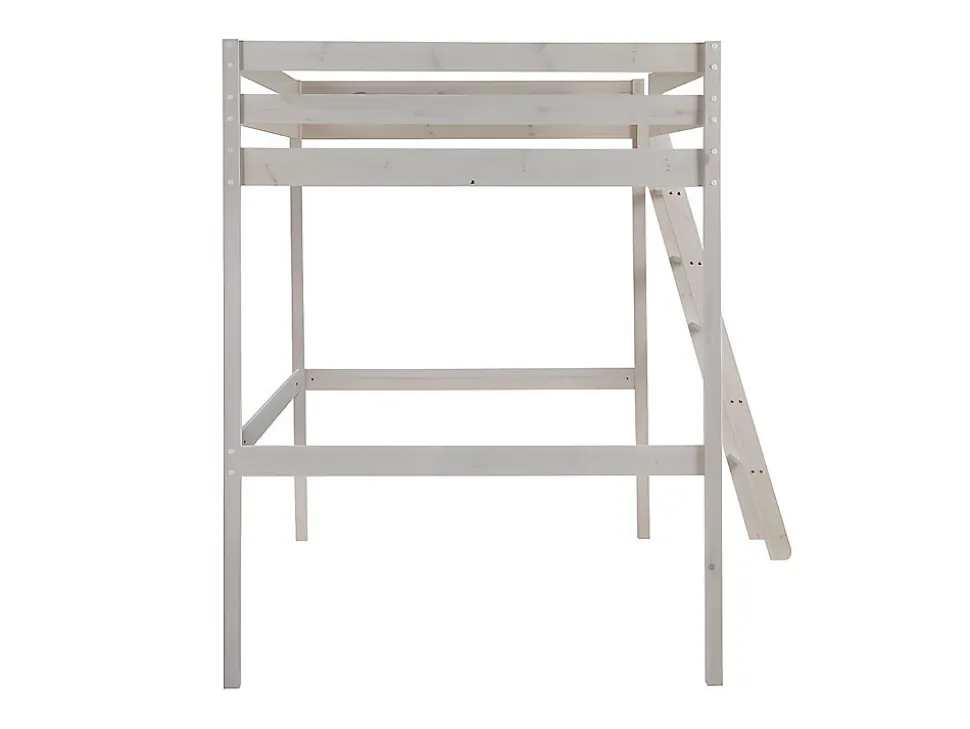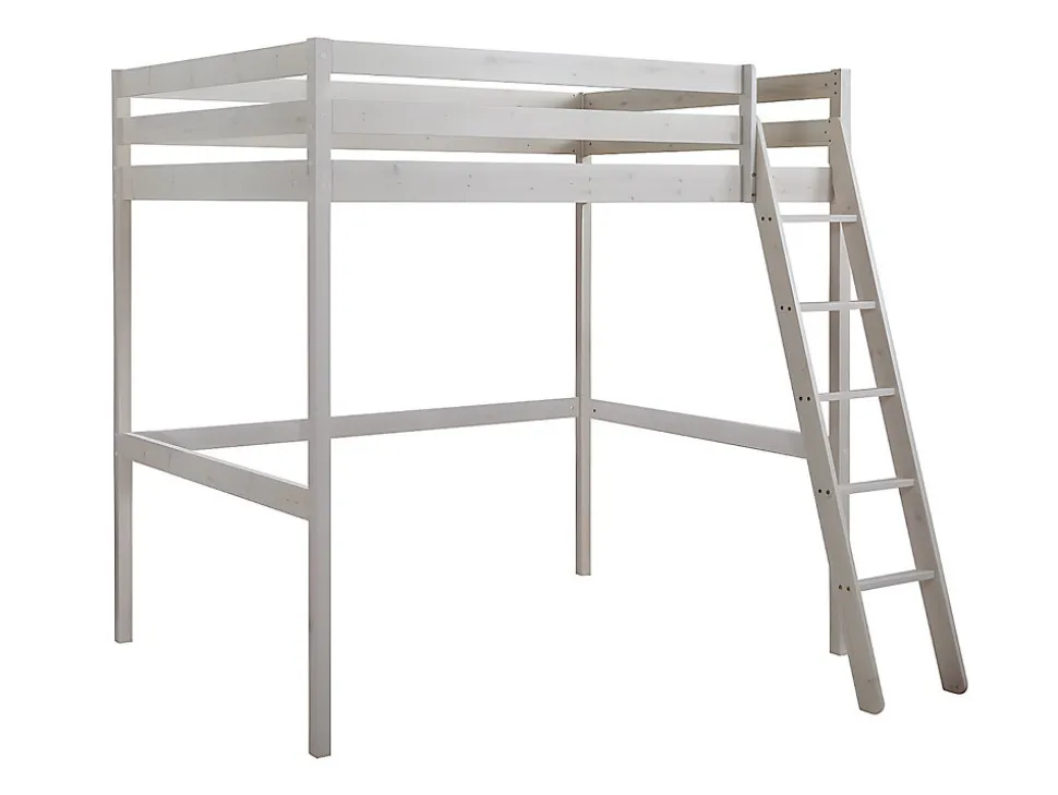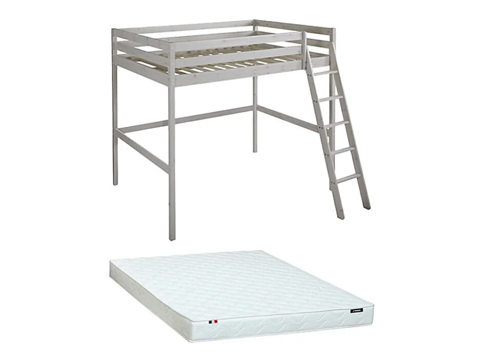 - Lit mezzanine 140 x 190 cm – Structure : Pin massif – Coloris : Blanc – Dimensions : L198 x P203,5 x H196,8 cm + Matelas – Le lit mezzanine GEDEON II, la solution efficace pour un astucieux gain de place !