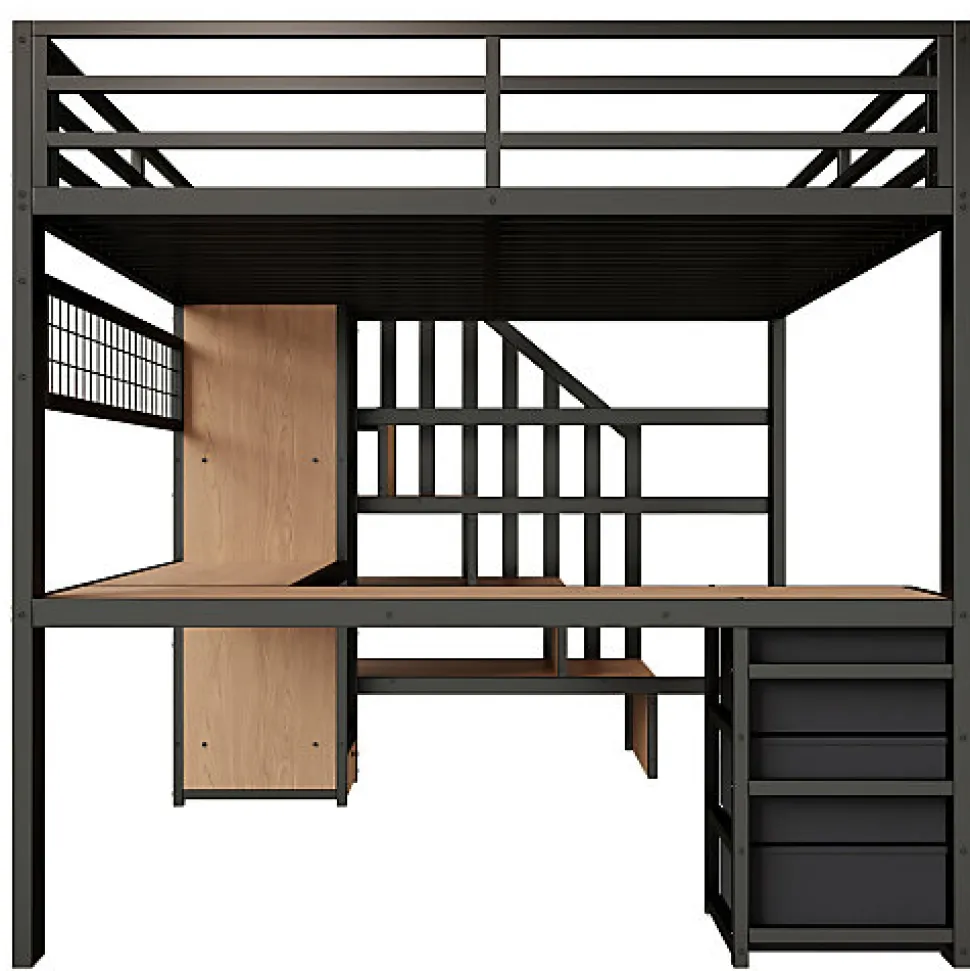 •【Construction robuste et durable】La combinaison d’une structure en acier et de panneaux de fibres de moyenne densité (MDF) garantit la robustesse, la durabilité et la sécurité de ce lit enfant, accompagnant ainsi la croissance de votre enfant.•【Éclairage intelligent et féérique】Les bandes lumineuses LED intégrées vous permettent de régler la couleur et la luminosité selon vos envies, créant une ambiance de sommeil apaisante et transportant votre enfant dans un monde féerique.•【Solutions de rangement optimales】Équipé d’étagères, de tiroirs et de penderies, ce lit offre un espace de rangement généreux pour les livres, les jouets et les vêtements, pour une chambre toujours propre et bien rangée.•【Espace de travail intégré】Le lit est doté d’un bureau intégré, fusionnant harmonieusement espace de travail et espace de repos pour créer un coin d’étude dédié et efficace pour votre enfant.•【Échelle de rangement astucieuse】L’échelle de rangement intégrée facilite l’accès au lit et offre un espace de rangement pratique et ludique.•【Facile à assembler】Des instructions détaillées et des pièces complètes sont disponibles pour vous aider à réaliser l’assemblage rapidement.