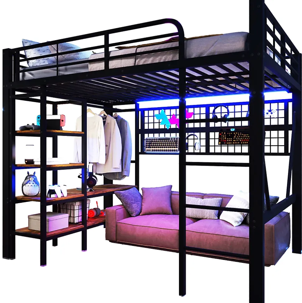 ▶ ▶ Détails ▶────────────────✦ Type de produit : Lit mezzanine✦ Couleur : Noir✦ Matériau : Métal + MDF✦ Dimensions du lit : 140 × 200 cm✦ Dimensions du produit : 204 × 145 × 180 cm✦ Poids net : 54 kg✦ Capacité maximale (lit) : 150 kg✦ Matelas inclus : Non✦ Épaisseur recommandée du matelas : 10 cm✦ Équipement : Ablagefach, filet de rangement, tringle à vêtements, espace ouvert sous le lit, bande LED intégrée✦ Nombre de colis : 2✦ Montage requis : Oui► Remarques ►※ Ce produit est livré en 2 colis. Ils peuvent arriver à des moments différents.※ En raison de mesures manuelles, un écart de 2–3 cm peut se produire.※ Les images du produit sont prises avec le produit réel, mais des variations de couleur peuvent se produire en fonction de l’éclairage.