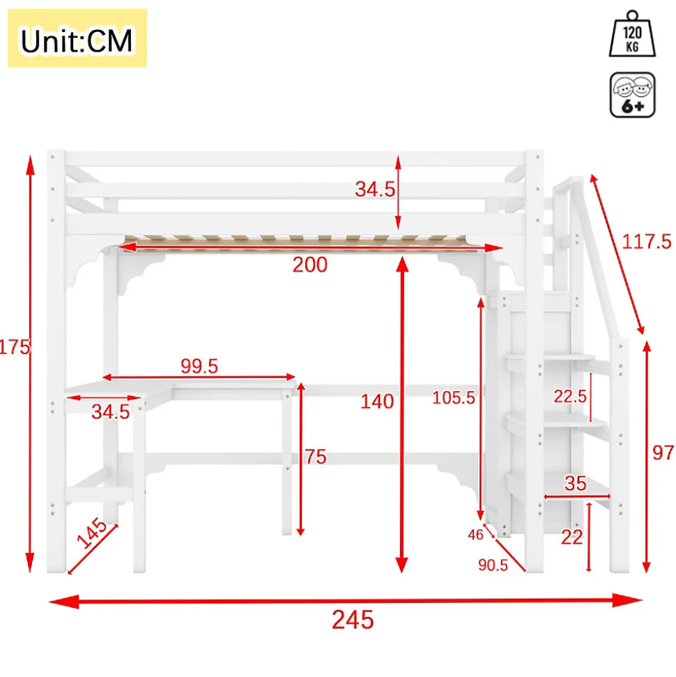 - 【Conception Ergonomique】 Le lit est pensé pour offrir une expérience pratique et agréable, permettant aux enfants ou adultes d’utiliser efficacement l’espace sous le lit pour rangement ou activités, tout en conservant un environnement organisé et fonctionnel.