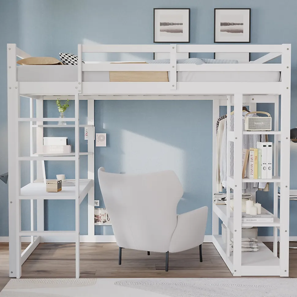 - 【Bureau Avec Rangement Latéral】 Sous le lit, un large bureau avec étagères latérales offre un espace de travail confortable et bien organisé, parfait pour étudier ou réaliser des activités créatives.