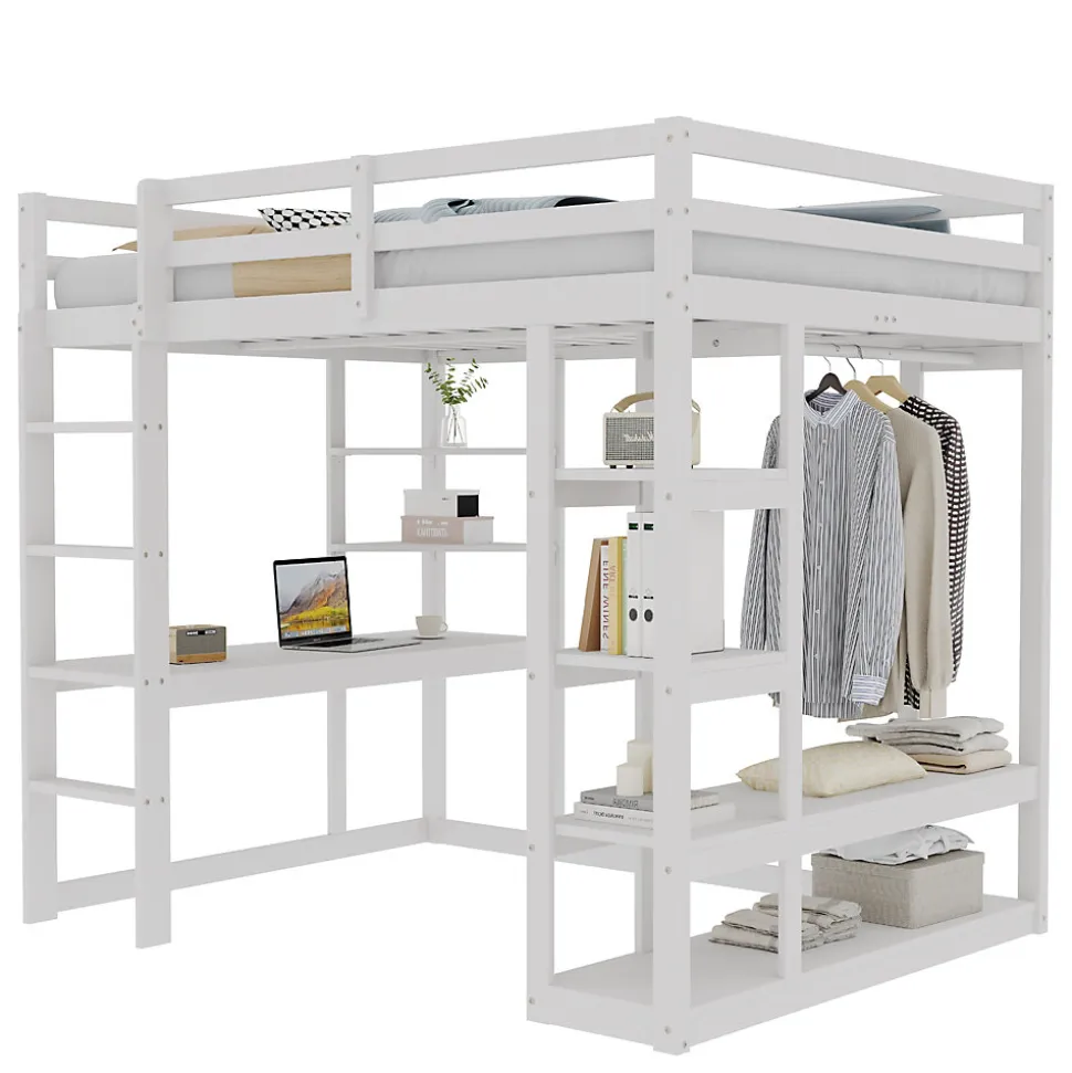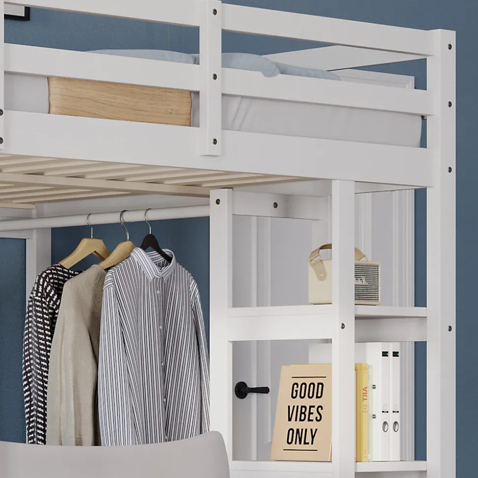 - 【Penderie Ouverte Sous Le Lit】 Le porte-vêtements intégré avec barres et étagères permet un rangement structuré des vêtements et accessoires, facilitant ainsi la gestion quotidienne de la chambre.