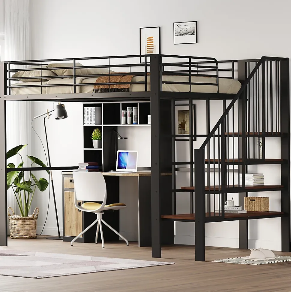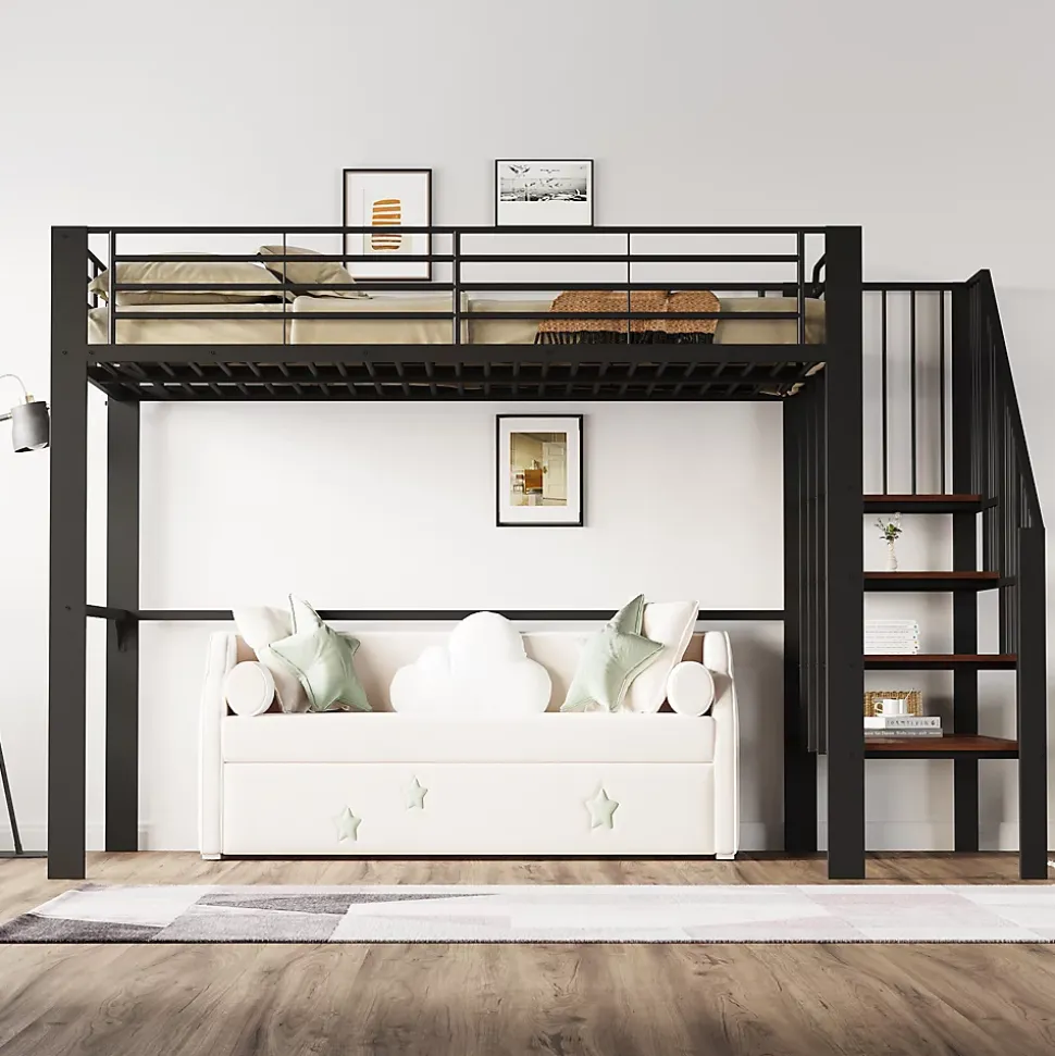 ▶ ▶ Détails ▶────────────────● Type de produit : lit mezzanine haut● Taille : 140 x 200 cm (Sans Matelas)● Couleur : Noir ● Matériaux : Métal + Contreplaqué + MDF● Niveau de montage : Montage complet requis / Montage partiel● Dimensions totales du produit : 251,5 x 145 x 169 cm● Détail des dimensions du produit : Veuillez consulter l’image des dimensions● Nombre de colis : 3● Poids total du produit : 61 kg● Capacité de charge : 150 kg● Épaisseur recommandée du matelas : 8-10 cm● Poids total des colis : 69 kg● Nombre de lattes : 24● Durée estimée de montage : 2 heures● Nombre recommandé de personnes : 2● Outils supplémentaires requis : Tous les outils inclus / tournevis● Éviter les outils électriques : Oui► Remarques ►※ En raison de mesures manuelles, un écart de 2 à 3 cm peut survenir.※ Toutes les images du produit ont été prises avec le produit original, mais des variations de couleur peuvent apparaître dues à la lumière du soleil ou d’autres facteurs.※ Le produit est livré en 3 colis qui peuvent arriver séparément. Merci de votre patience.