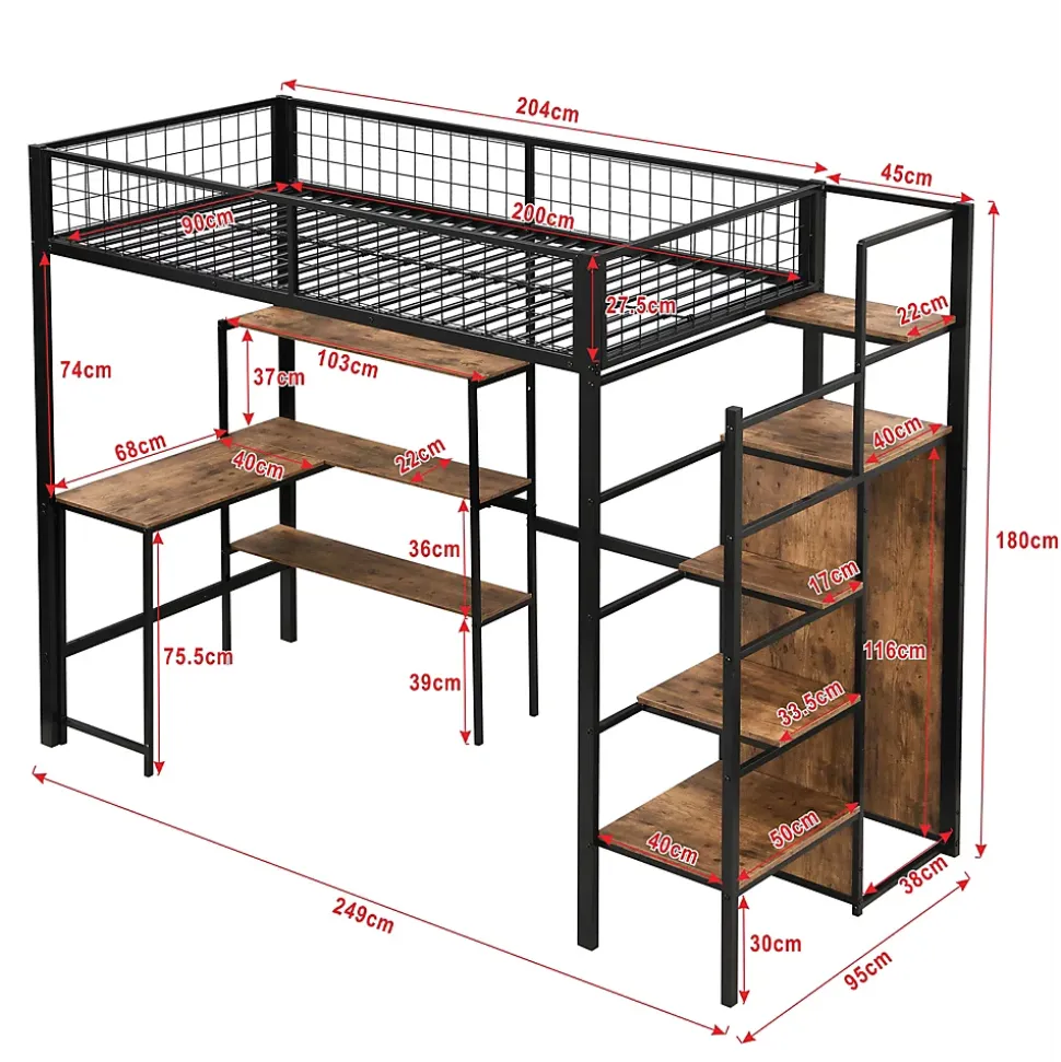 - 【Rangement Pratique et Abondant】 Ce lit est équipé d’un bureau et de plusieurs étagères pour ranger facilement des livres, des lampes, des décorations et plus encore. De plus, un petit placard intégré permet de garder les vêtements bien rangés, ce qui contribue à un environnement de chambre ordonné.