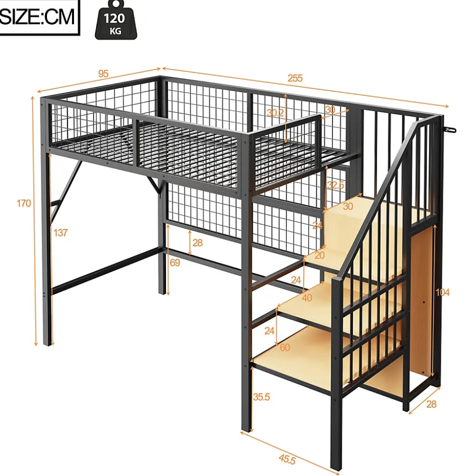 - Design moderne et gain de place : structure métal noire et panneaux MDF aux finitions sobres, silhouette fonctionnelle adaptée à une chambre d’enfant, d’adolescent ou à un studio pour optimiser l’espace.