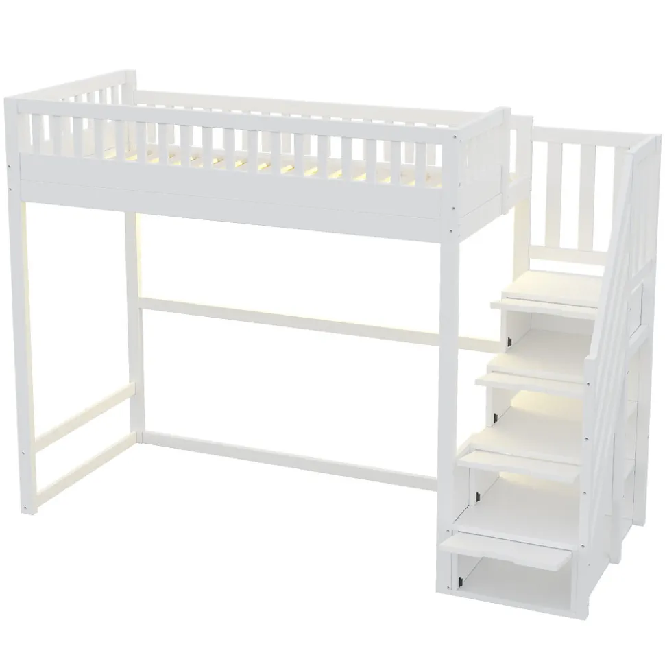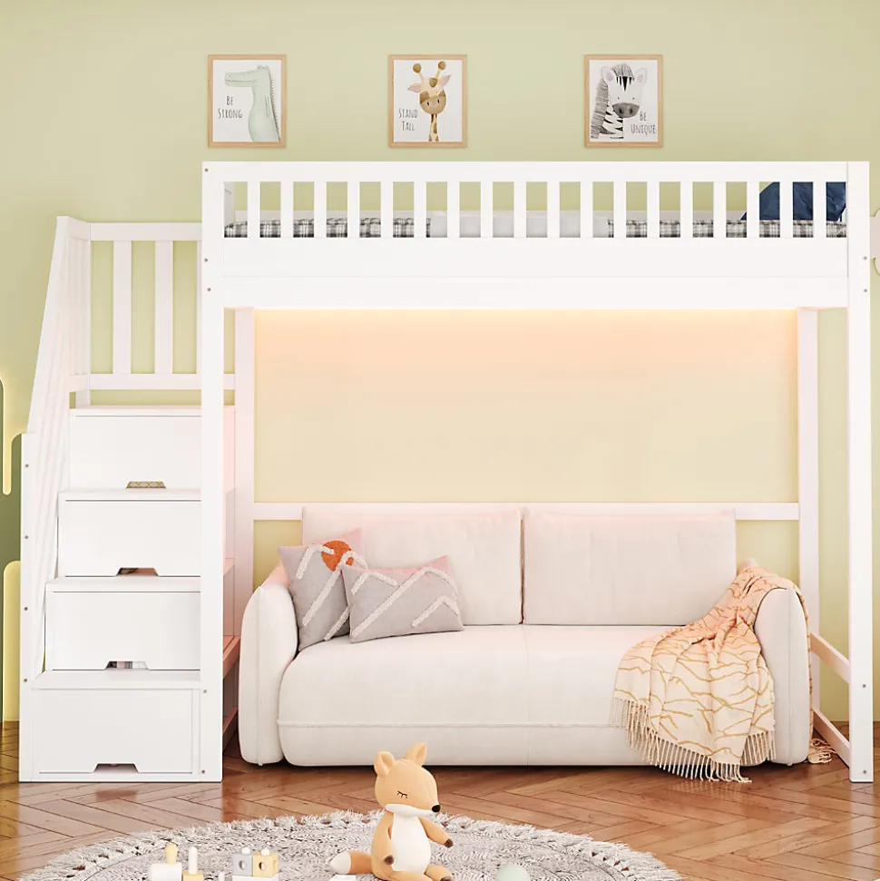 •【Sécurité renforcée 】Les barrières de lit plus hautes et les garde-corps continus entourant la zone de couchage offrent une protection fiable contre les chutes, garantissant un environnement de sommeil plus sûr pour les enfants et les adolescents. Une échelle robuste assure une stabilité optimale et un accès facile au lit.•【Échelle de rangement intégrée】Chaque barreau de l’échelle dissimule un espace de rangement pour les livres, les vêtements, le linge de lit ou les objets du quotidien, contribuant ainsi à garder la chambre propre et bien rangée.•【Espace ouvert sous le lit】L’espace ouvert sous le lit offre une grande flexibilité, permettant une configuration personnalisée de la chambre. Vous pouvez l’utiliser comme coin devoirs, coin lecture, espace de jeux ou aire de jeux pour enfants. À mesure que votre enfant ou adolescent grandit, cet espace peut être facilement réaménagé pour répondre à ses besoins.•【Éclairage LED intégré】Ce lit mezzanine est équipé de bandes lumineuses LED en partie basse, diffusant une lumière d’ambiance douce, améliorant la visibilité nocturne et créant une atmosphère chaleureuse et confortable.•【Construction en bois robuste】Ce lit mezzanine est fabriqué en bois durable et renforcé par un cadre solide, offrant une stabilité supérieure et une capacité de charge fiable.•【Escalier rétractable】L’escalier peut être installé à gauche ou à droite du lit, offrant une grande flexibilité d’installation pour s’adapter à différentes configurations de pièce et optimiser l’espace.•【 Montage facile】Des instructions détaillées et toutes les pièces nécessaires sont fournies pour un montage rapide.