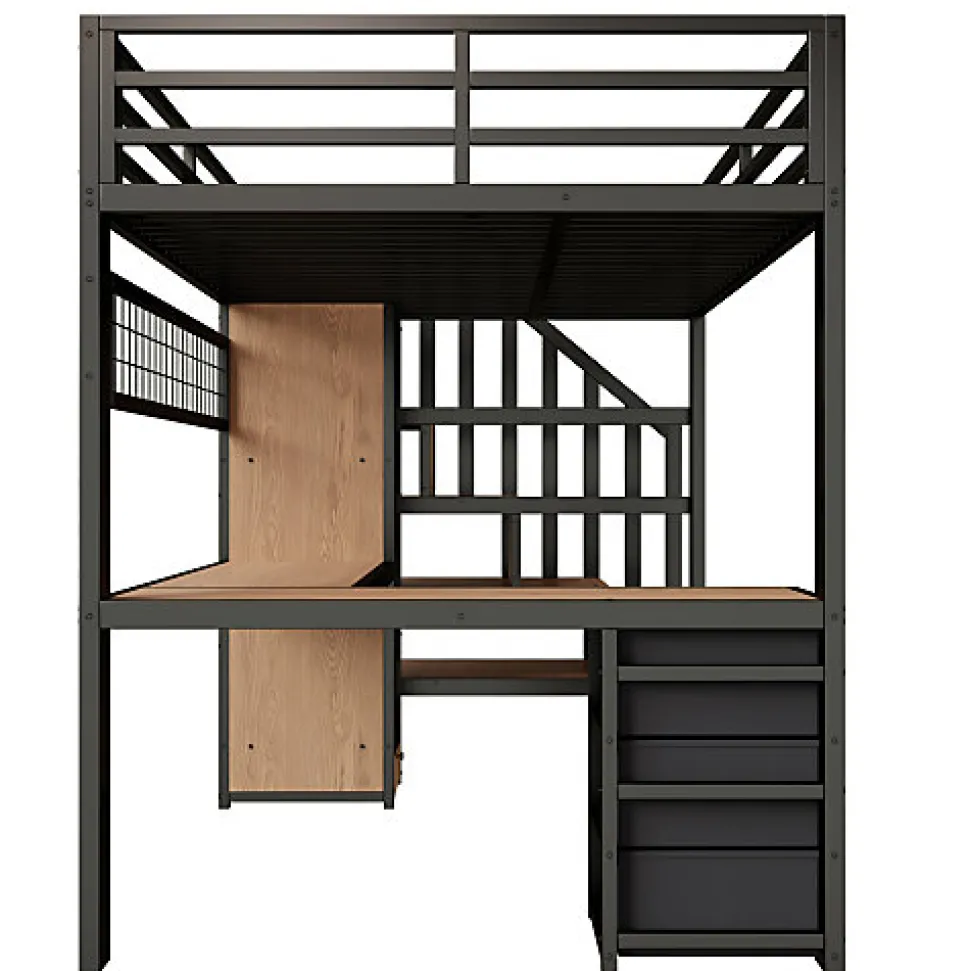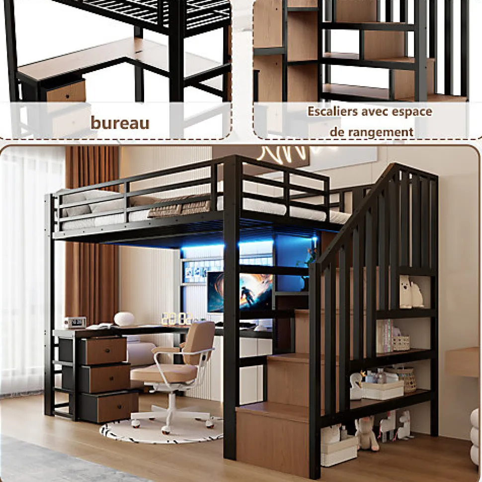 •【Construction robuste et durable】La combinaison d’une structure en acier et de panneaux de fibres de moyenne densité (MDF) garantit la robustesse, la durabilité et la sécurité de ce lit enfant, accompagnant ainsi la croissance de votre enfant.•【Éclairage intelligent et féérique】Les bandes lumineuses LED intégrées vous permettent de régler la couleur et la luminosité selon vos envies, créant une ambiance de sommeil apaisante et transportant votre enfant dans un monde féerique.•【Solutions de rangement optimales】Équipé d’étagères, de tiroirs et de penderies, ce lit offre un espace de rangement généreux pour les livres, les jouets et les vêtements, pour une chambre toujours propre et bien rangée.•【Espace de travail intégré】Le lit est doté d’un bureau intégré, fusionnant harmonieusement espace de travail et espace de repos pour créer un coin d’étude dédié et efficace pour votre enfant.•【Échelle de rangement astucieuse】L’échelle de rangement intégrée facilite l’accès au lit et offre un espace de rangement pratique et ludique.•【Facile à assembler】Des instructions détaillées et des pièces complètes sont disponibles pour vous aider à réaliser l’assemblage rapidement.