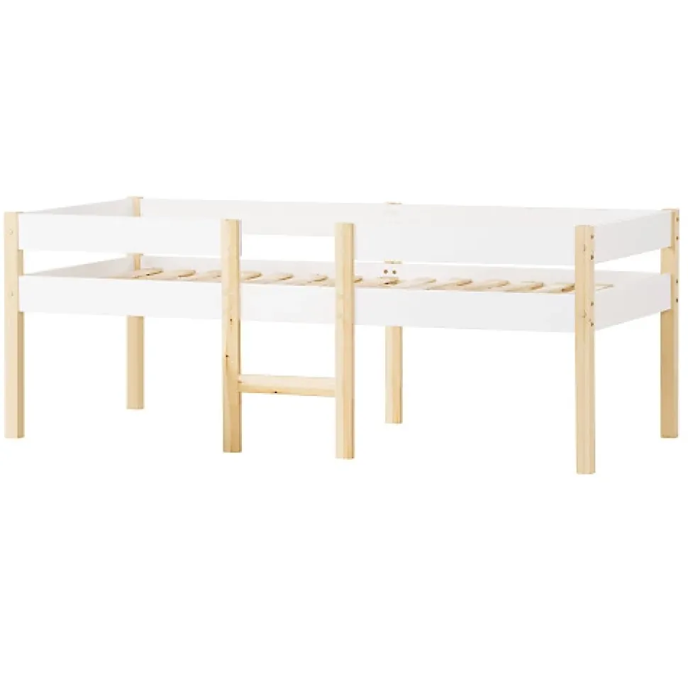 •【Apparence minimaliste】 Le lit surélevé possède une apparence minimaliste, la combinaison de couleur blanche et chêne s’intègre parfaitement dans la chambre de votre enfant et leur donne un sentiment de tranquillité.•【Espaces de rangement et roulettes des tiroirs】 Les deux tiroirs situés au bas du lit permettent de gagner de la place et peuvent être utilisés pour ranger des vêtements, des jouets ou d’autres objets d’usage quotidien. Grâce aux roulettes, les deux tiroirs en MDF pouvent être poussés et tirés facilement.•【Barrières anti-chute】 Le lit surélevé dispose des barrières anti-chute pour la sécurité de votre enfant, grâce auxquelles vous n’avez plus à vous inquiéter de la blessure de votre petit.•【Structure robuste】 Le cadre en bois de pin massif et les pieds de support au centre du lit de chaque côté confèrent au lit une structure robuste et durable.•【Facile à installer】 Le cadre de lit avec sommier à lattes est facile à monter conformément aux instructions de montage fournies.