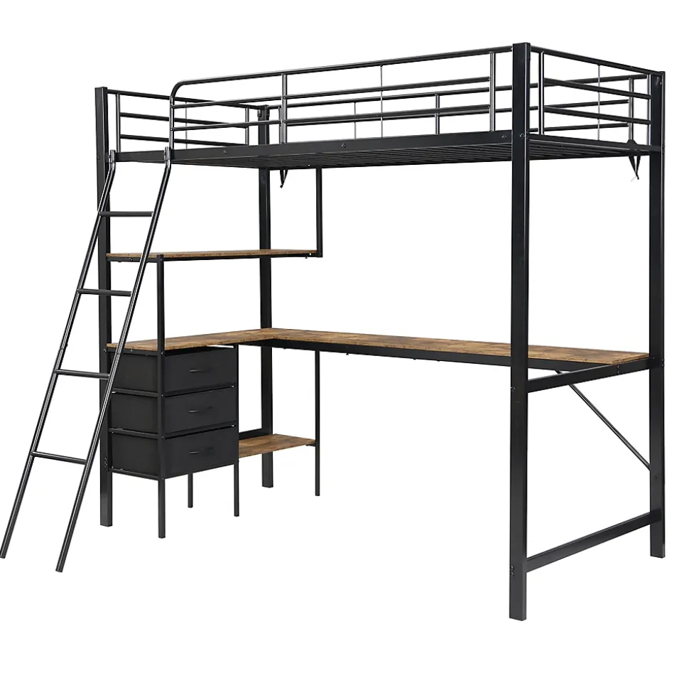 - 【Design pensé pour la fonctionnalité】 La combinaison de métal et de bois crée un design moderne et robuste, intégrant rangement et espace de travail pour maximiser l’utilisation de l’espace dans la chambre.