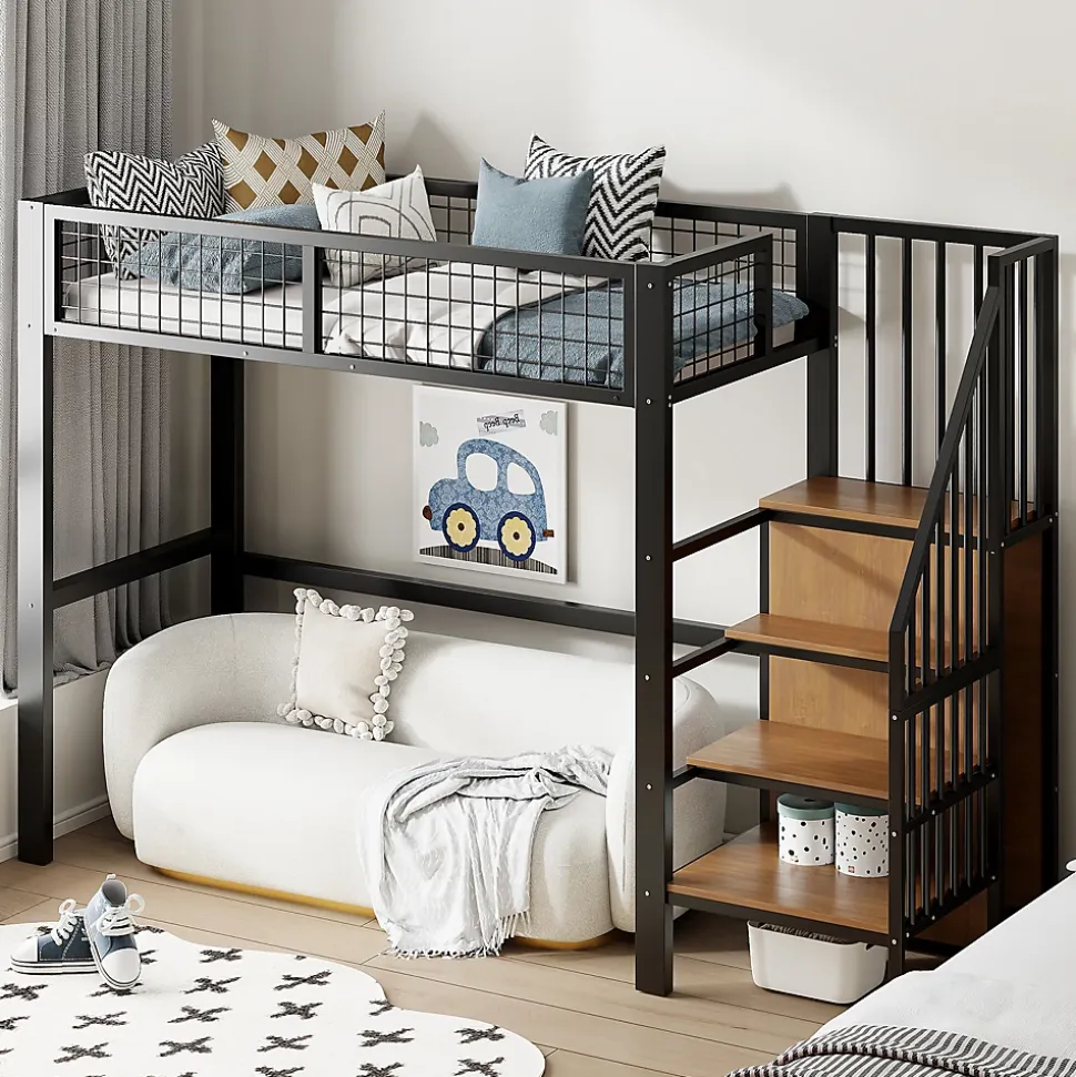- 【Échelle sécurisée et multifonctionnelle】 L’échelle intégrée assure un accès sûr au lit pour les enfants et sert également de rangement pratique grâce au placard situé en dessous, simplifiant l’organisation et facilitant le quotidien.