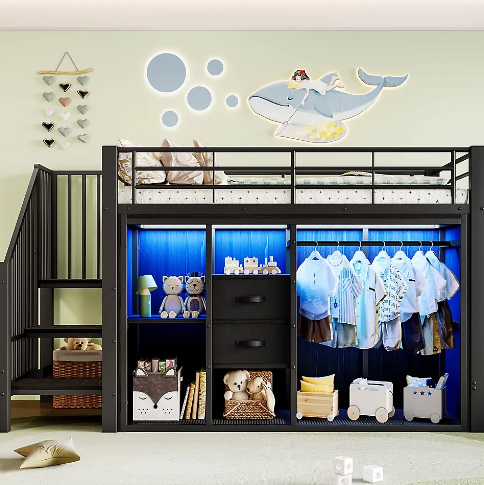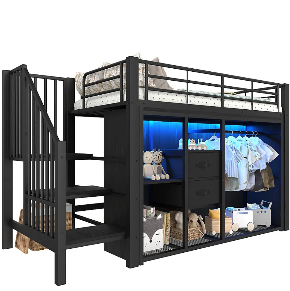 - 【Rangement Modulable】 Les compartiments ouverts et fermés répartis autour du lit proposent plusieurs options de rangement, aidant à optimiser chaque espace disponible dans les chambres de petite superficie.