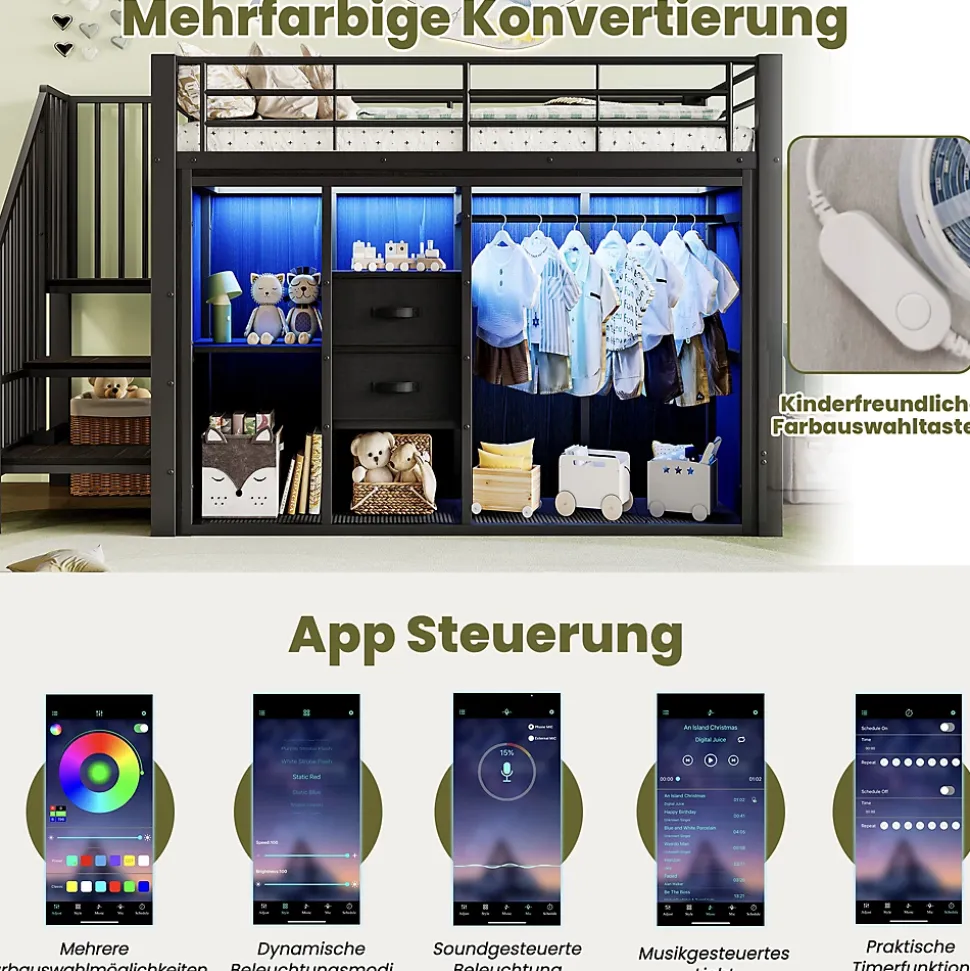 - 【LED Connectées】 Les bandes LED contrôlables par application offrent une ambiance lumineuse adaptable selon les activités, créant un environnement agréable pour lire, se détendre ou s’endormir en douceur.