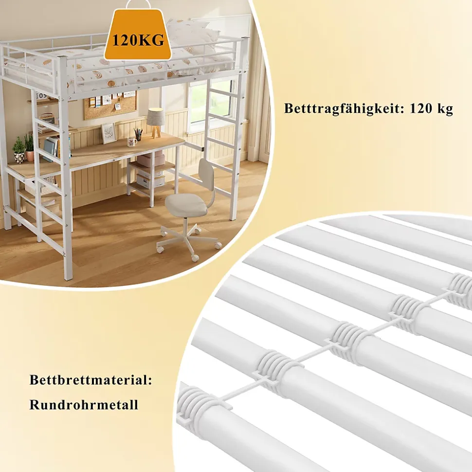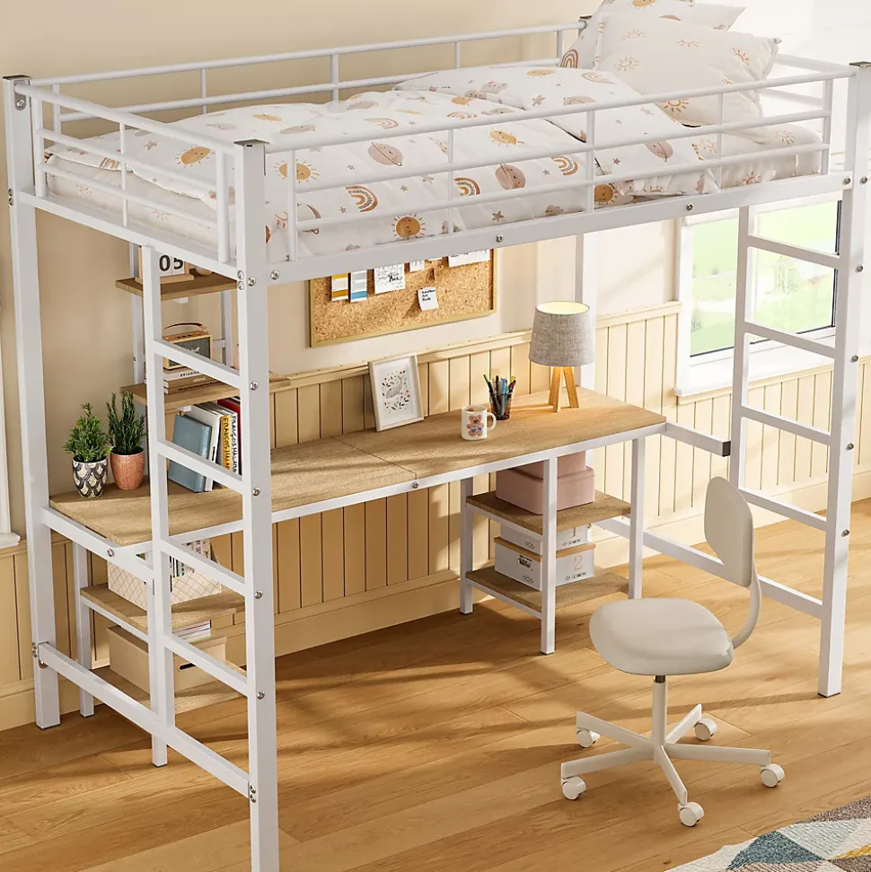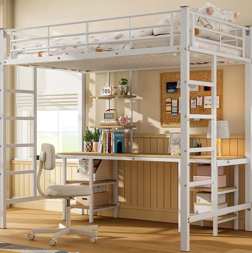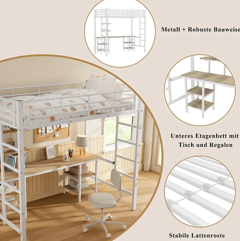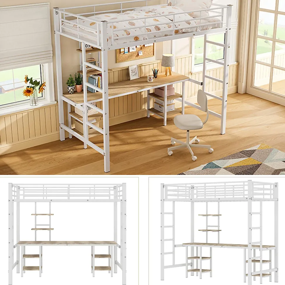 - 【Espace multifonction】 Conception ingénieuse avec un espace inférieur transformé en zone de travail et de loisirs, équipé d’un bureau et d’étagères pour maximiser l’utilisation de la chambre.
