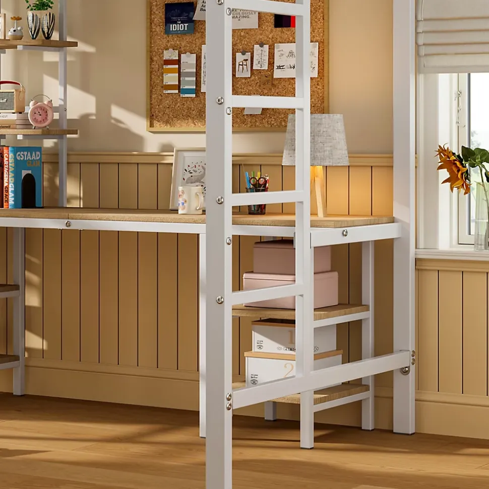 - 【Rangements intégrés】 Étagères placées au-dessus et sur les côtés du bureau pour un accès facile aux livres, jouets et objets du quotidien, favorisant un espace organisé.