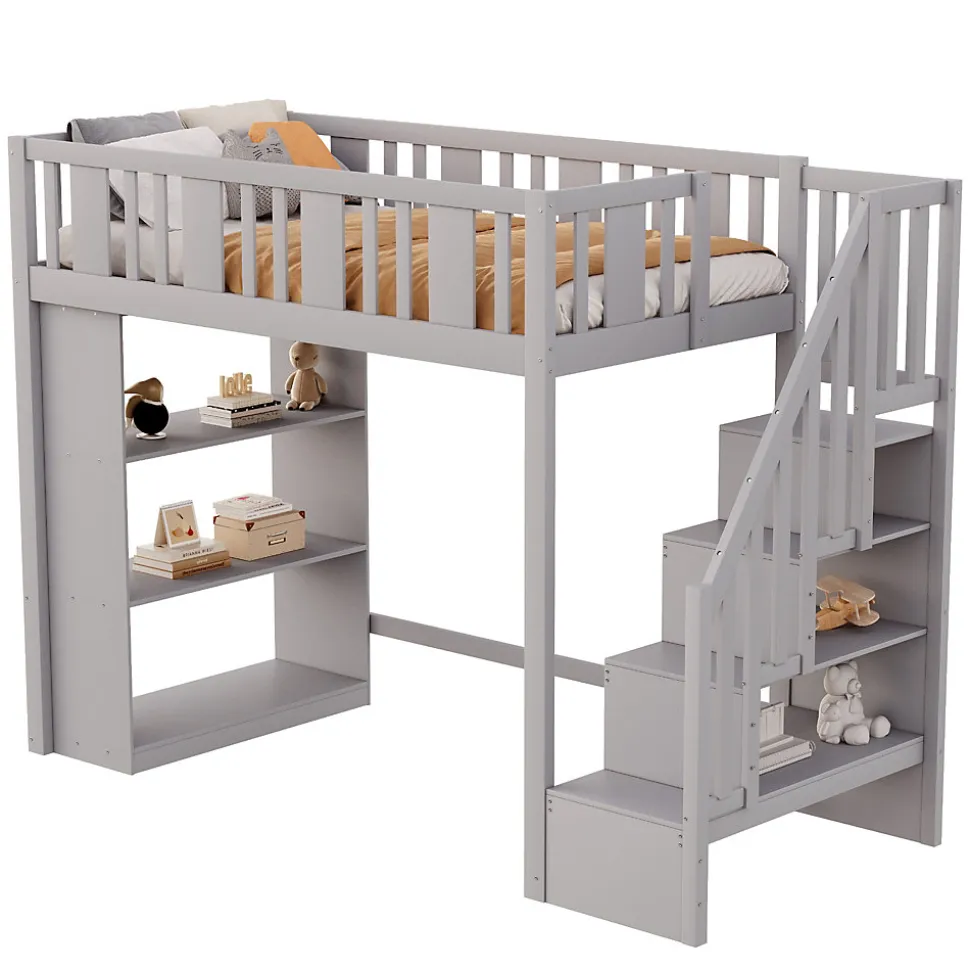 - 【Escalier Avec Rangement Intégré】 L’escalier latéral fixe facilite l’accès au lit supérieur et intègre des étagères ouvertes, parfaites pour ranger livres, jouets ou fournitures scolaires en toute simplicité.