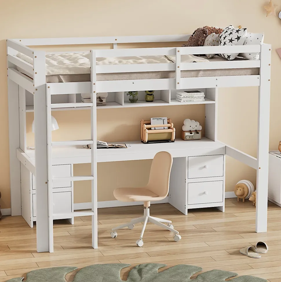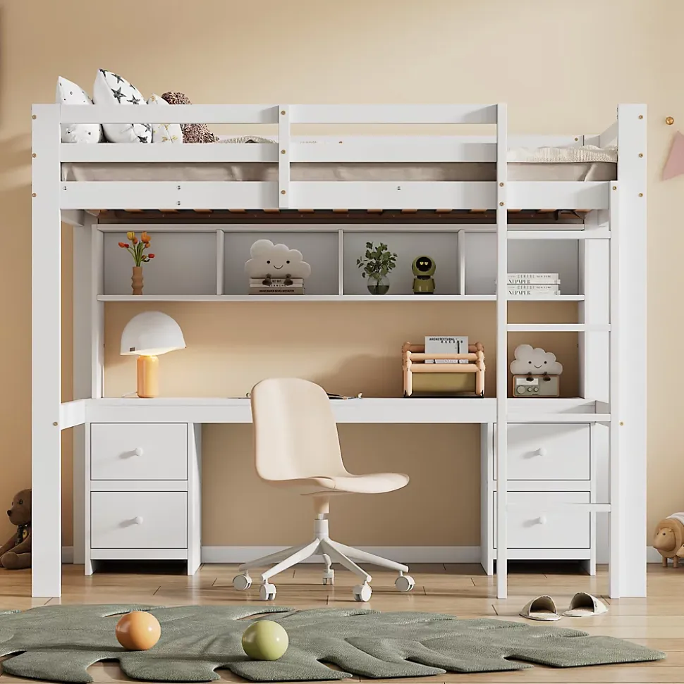 - 【Rangement optimisé】 Ce lit dispose de quatre tiroirs pratiques sous le lit et de quatre grands espaces de rangement au-dessus du bureau, parfaits pour organiser vos vêtements, jouets ou autres objets, permettant ainsi de garder votre chambre propre et bien rangée.