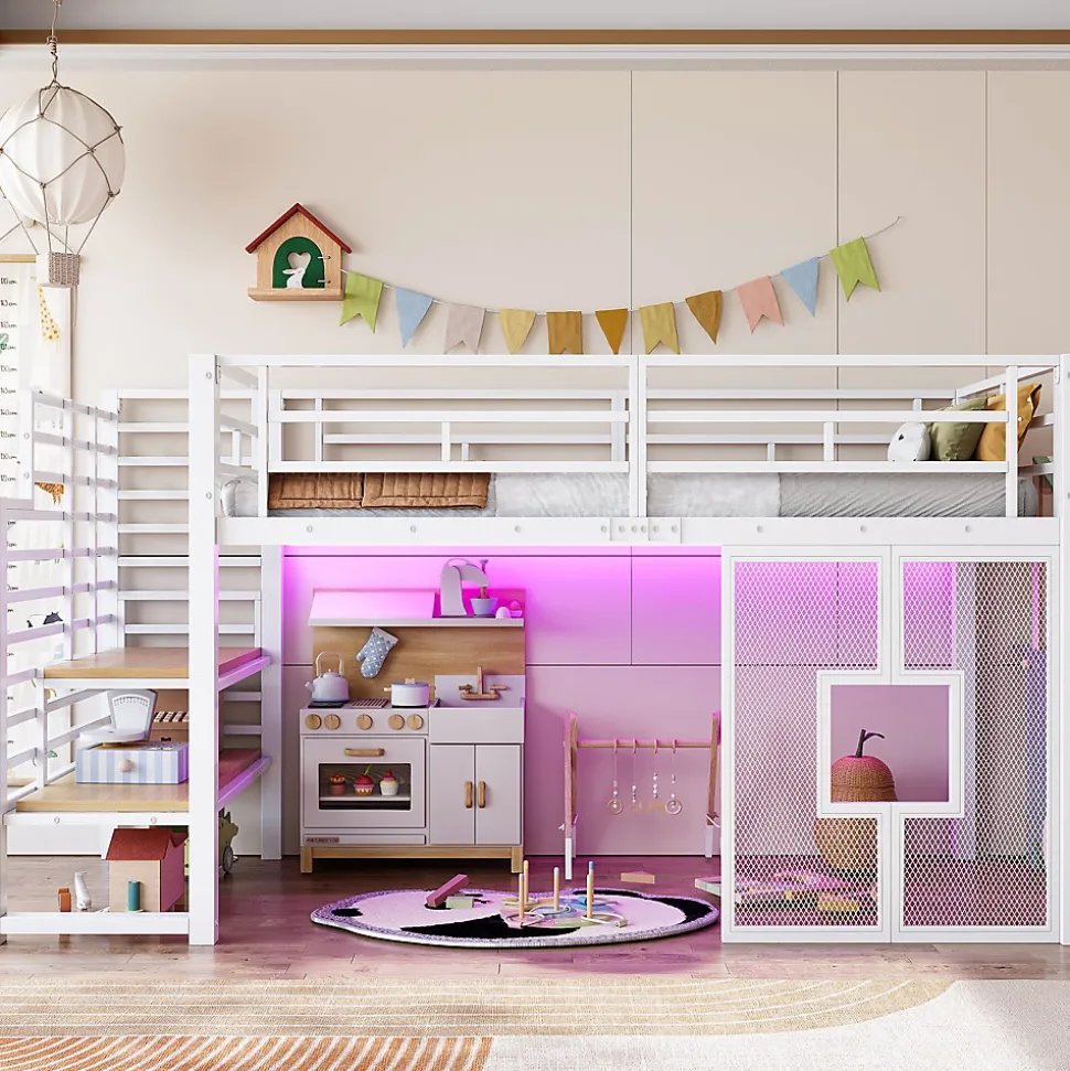 - 【Lit Mezzanine Gain de Place】 Ce lit mezzanine en métal maximise l’espace vertical en combinant un lit supérieur confortable avec un bureau intégré et des rangements, créant un environnement fonctionnel et pratique pour chaque chambre.