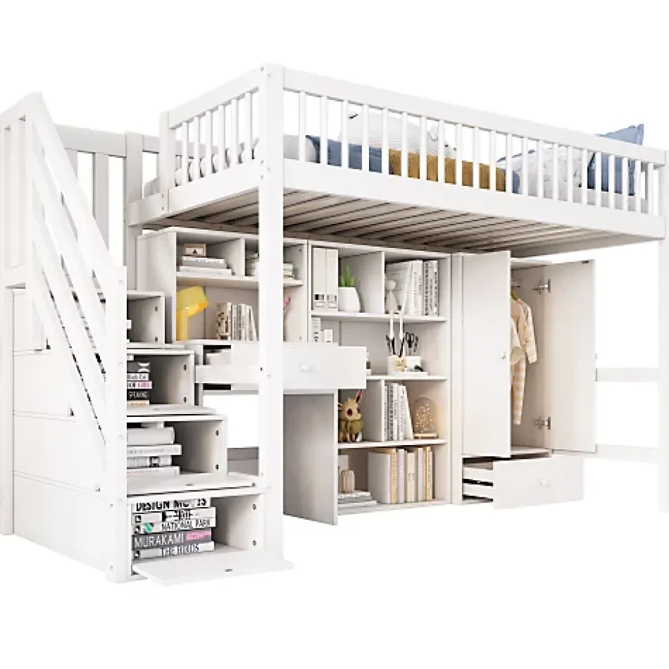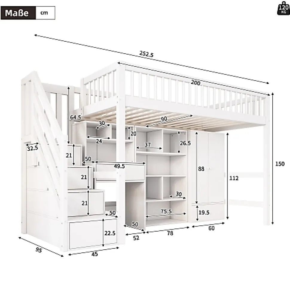 •【Conception multifonctionnelle】Non seulement ce lit superposé peut être utilisé pour dormir, mais il dispose également de fonctions de divertissement, d’apprentissage et de rangement.•【Optimisation de l’espace】Il y a des bureaux, des tiroirs, des armoires et des penderies sous le lit, et des rangements peuvent également être effectués dans les escaliers, optimisant ainsi l’utilisation de l’espace et permettant aux enfants d’avoir suffisamment d’espace pour ranger des jouets, des livres, des vêtements, etc.•【Aspect blanc】Le blanc est une couleur vive et rafraîchissante qui donne aux gens une sensation de confort et de détente. Il est également plus facile à combiner avec différents styles de décoration, rendant toute la pièce plus chaleureuse et plus confortable.•【Matériaux de haute qualité】Le corps du lit est en bois massif, robuste et durable, avec une forte capacité de charge et stabilité. La conception de la clôture assure la sécurité de votre enfant et peut être utilisée pendant une longue période.