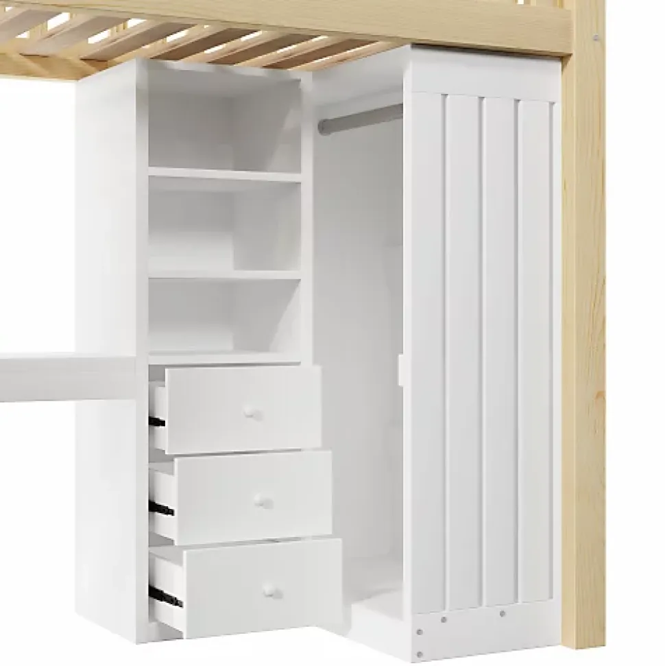 •【Sélection naturelle, durable et robuste】Fabriqué en pin de première qualité et en panneaux de fibres de moyenne densité (MDF), ce meuble allie beauté naturelle et robustesse pour un confort et une tranquillité d’esprit assurés.•【Espace d’étude intégré】Équipé d’un bureau ergonomique, ce meuble crée un espace d’étude dédié à votre enfant, favorisant sa concentration et son épanouissement.•【Rangement optimal, propre et organisé】Les placards intégrés et les trois tiroirs spacieux répondent à tous vos besoins de rangement, pour une maison bien organisée.•【Visibilité immédiate】La conception ouverte des placards permet de visualiser tous les objets en un coup d’œil, pour un accès facile et un quotidien plus agréable.•【Accès sécurisé et pratique】Équipé de barres d’appui et de marches, ce meuble garantit la sécurité des enfants et un accès facile, pour un confort optimal à la maison.•【Facile à assembler】Des instructions détaillées et des pièces complètes sont disponibles pour vous aider à réaliser l’assemblage rapidement.