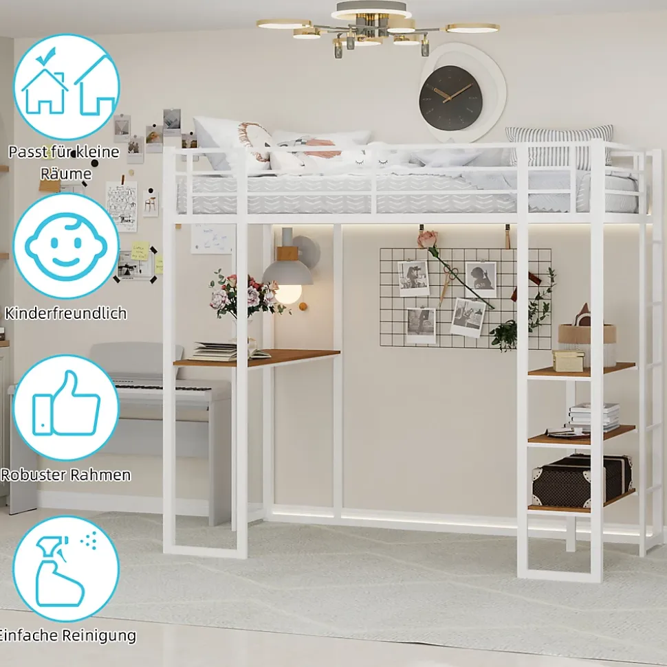 ▶ ▶ Détails ▶────────────────● Type de produit : Lit mezzanine● Matériau : Métal (fer)● Couleur : Blanc● Pays d’origine : Chine● Usage recommandé : Chambre à coucher● Dimensions totales : 200 × 107 × 180 cm (L × l × H)● Montage requis : Oui● Nombre de colis : 2► Remarques ►※ Les dimensions sont indiquées à titre approximatif.※ Les colis peuvent être livrés séparément.※ La couleur du produit peut légèrement varier selon la lumière ou l’écran.