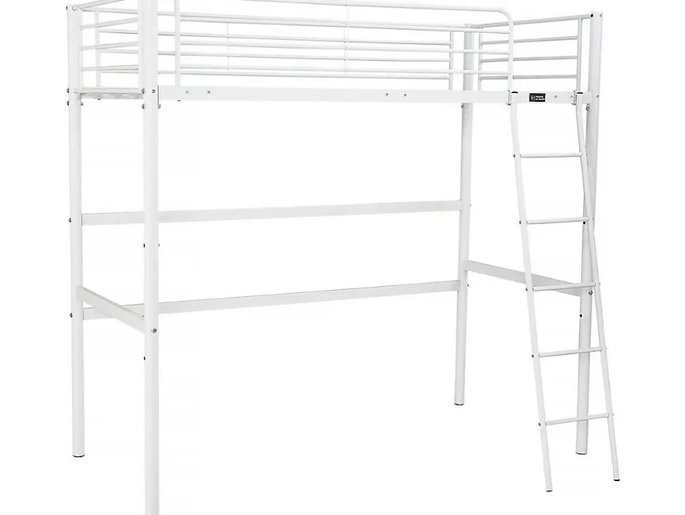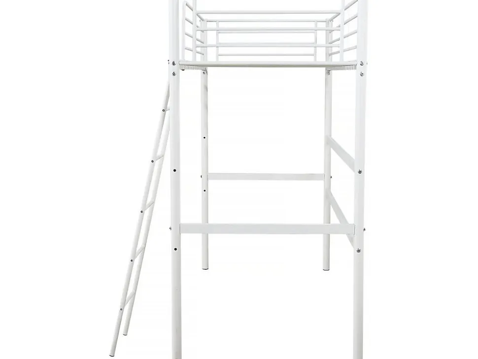 Lit mezzanine « Alora »Ce lit mézzanine met à votre disposition un couchage surélevé. Il est idéal pour une chambre d’enfant. Grâce à sa construction en hauteur, ce modèle vous permet de rentabiliser l’espace sous le lit (espace de travail ou de rangement, par exemple). Les marches de l’échelle larges , garantissent la facilité et la sécurité des montées et des descentes. Lit mezzanine « Alora » – 90 x 190 cm – Blanc – Dimensions : 200 x 97 x 189 cm – Matière : tube en acier avec un revêtement en poudre – Hauteur de couchage : 152 cm .Matières: Tube en acier avec un revêtement en poudreDescriptif: 24 Lattes en métal inclues – Dimensions des lattes : 1.6 x 1.6 x 2.2 Echelle en acier 5 marches inclues Barrière de sécurité – Dimensions barrière de sécurité : 150 x 1.9 x 32 cm Dimensions de l’échelle : 159 x 36.5 x 2.2 Taille recommandé pour le matelas : 90 x 190 cm Hauteur de couchage : 152 cmFinition: Mâtcouleur (filtre): Blancpieds: Tube en acier avec un revêtement en poudre – Dimensions du pieds : 5 x 5 x 160 cmCouleurs: blancDimensions: 200 x 97 x 189 cmLongueur: 200hauteur: 189Largeur: 97Poids: 36.3 kgPoids maximum supporté : 100 kgColisage: 1 colis : – 1,97 x 0,46 x 0,145 m, 36,3 kg