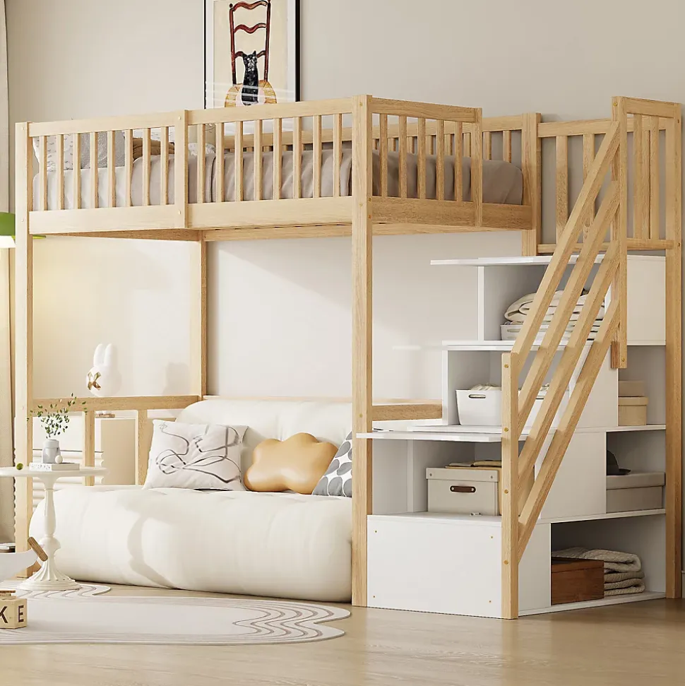 - 【Rangement pratique et intégré】 Les escaliers intégrés sont plus qu’un simple accès au lit, ils offrent également un espace de rangement supplémentaire pour organiser livres, jouets et accessoires. Cela vous aide à maximiser l’espace dans des chambres plus petites.