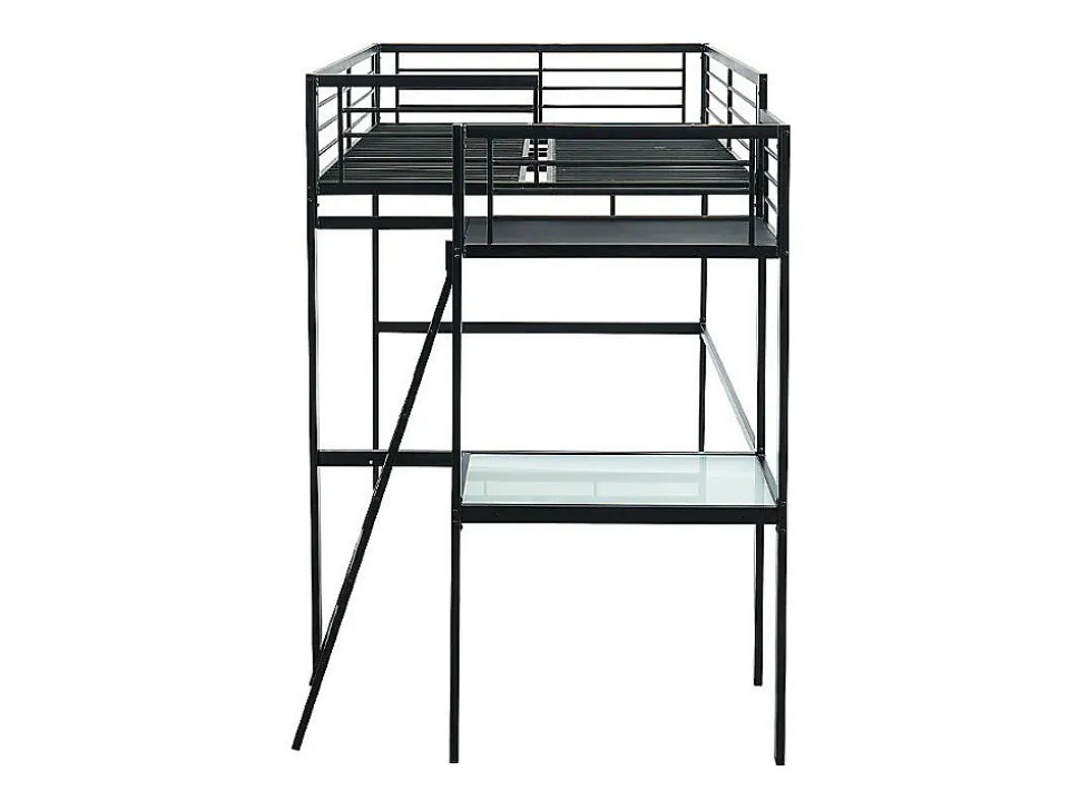 De jour comme de nuit, le lit mezzanine CASUAL II sera l’élément phare de votre pièce ! Doté d’un couchage 2 places surélevé, il dispose d’une partie inférieure aménagée en 2 espaces distincts : Un espace bureau pour des après-midis studieux grâce à son plateau intégré et un espace prêt à accueillir un canapé pour des soirées entre amis. Idéal pour les espaces réduits, il fera votre bonheur au quotidien.Caractéristiques Couleur (nuance) : Gris anthracite Matière (précision) : Acier Taille (couchage) : 140 x 190 cm Nombre de places : 2 places Sans matelas Avec sommier Type de sommier : Cadre à lattes, Métal Avec bureau Charge maximale supportée : 200 kg À monter soi-même : Sommier de 26 lattes : Plateforme en MDF Finition : Mat Bureau : verre trempé 6 mm : Echelle réversible Charge maximum supportée : 200 kg : A fixer au mur : Ce lit est compatible avec tous les matelas 140 x 190 cm : Attention ne convient pas aux enfants de moins de 6 ansDimensions Longueur : 254 cm Hauteur : 197 cm Profondeur : 146 cm Hauteur sous le lit : 158 cm Plateforme bureau : L90 x P51 cmLivraisonLors de la livraison, il est conseillé de vérifier que le bon nombre de colis a été livré.ColisColis n°1 : Longueur 203 cm, Largeur 50 cm, Hauteur 11 cm, Poids 40 kg. Colis n°2 : Longueur 150 cm, Largeur 59 cm, Hauteur 13 cm, Poids 36 kg. Colis n°3 : Longueur 101 cm, Largeur 57 cm, Hauteur 7 cm, Poids 13 kg.
