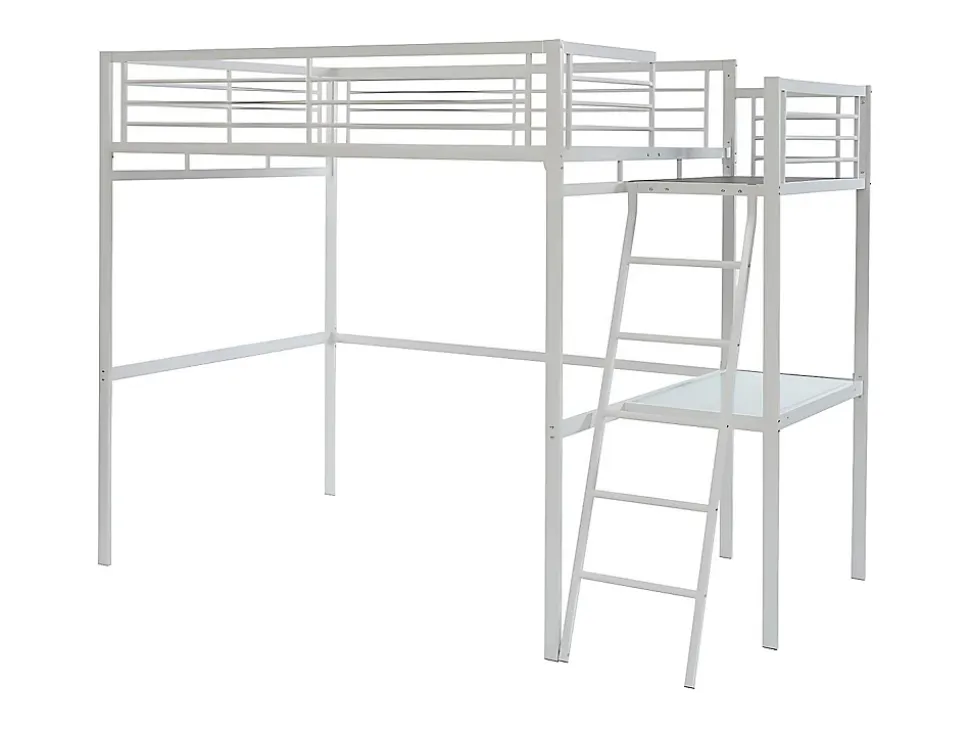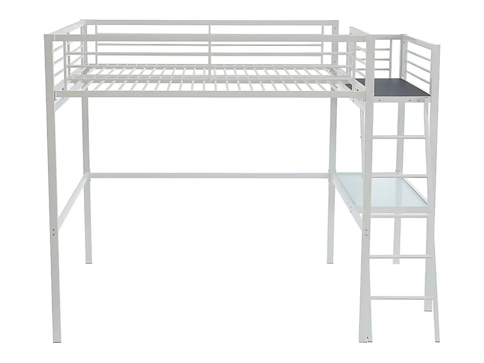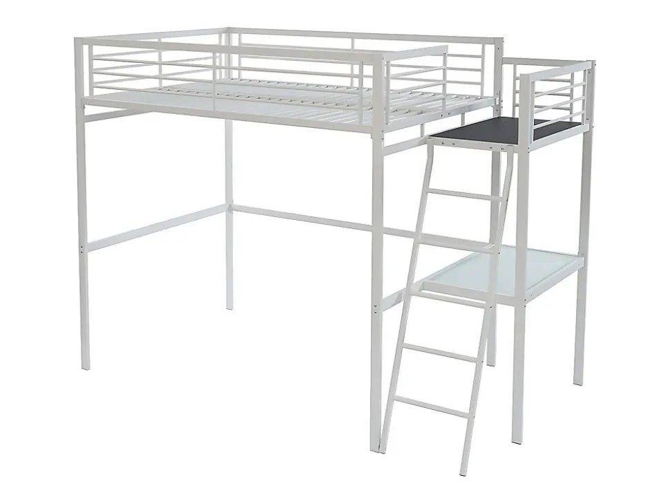 De jour comme de nuit, le lit mezzanine CASUAL II sera l’élément phare de votre pièce ! Doté d’un couchage 2 places surélevé, il dispose d’une partie inférieure aménagée en 2 espaces distincts : Un espace bureau pour des après-midis studieux grâce à son plateau intégré et un espace prêt à accueillir un canapé pour des soirées entre amis. Idéal pour les espaces réduits, il fera votre bonheur au quotidien.Caractéristiques Couleur (nuance) : Blanc Matière (précision) : Acier Taille (couchage) : 140 x 190 cm Nombre de places : 2 places Sans matelas Avec sommier Type de sommier : Cadre à lattes, Métal Avec bureau Charge maximale supportée : 200 kg À monter soi-même : Sommier de 26 lattes : Plateforme en MDF Finition : Mat Bureau : verre trempé 6 mm : Echelle réversible Charge maximum supportée : 200 kg : A fixer au mur : Ce lit est compatible avec tous les matelas 140 x 190 cm : Attention ne convient pas aux enfants de moins de 6 ansDimensions Longueur : 254 cm Hauteur : 197 cm Profondeur : 146 cm Hauteur sous le lit : 158 cm Plateforme bureau : L90 x P51 cmLivraisonLors de la livraison, il est conseillé de vérifier que le bon nombre de colis a été livré.ColisColis n°1 : Longueur 203 cm, Largeur 50 cm, Hauteur 11 cm, Poids 40 kg. Colis n°2 : Longueur 150 cm, Largeur 59 cm, Hauteur 13 cm, Poids 36 kg. Colis n°3 : Longueur 101 cm, Largeur 57 cm, Hauteur 7 cm, Poids 13 kg.