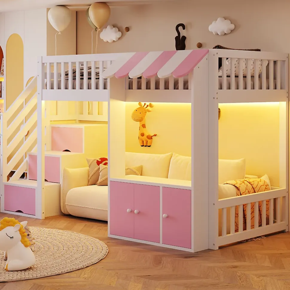 •【Lit mezzanine avec escalier et rangements intégrés】Ce lit mezzanine est doté d’un escalier intégrant trois compartiments de rangement, offrant un espace pratique pour ranger livres, jouets, vêtements et autres objets, optimisant ainsi l’espace de la chambre et simplifiant son organisation.•【Rangements optimisés】Ce lit mezzanine en bois offre un vaste espace de rangement sous le sommier, idéal pour ranger les jouets volumineux, la literie et autres articles, répondant aux besoins de chacun tout en optimisant l’espace.•【Éclairage multicolore】Un bandeau lumineux circulaire entoure le lit, offrant un éclairage optimal; l’éclairage multicolore permet également de créer différentes ambiances.•【Espace ouvert】L’espace sous le lit peut être aménagé en second couchage en ajoutant simplement un matelas et un surmatelas. Il peut également servir d’aire de jeux pour enfants et d’espace de rangement pour les jouets volumineux, répondant ainsi aux besoins de chacun.•【Facile à assembler】Des instructions détaillées et des pièces complètes sont disponibles pour vous aider à réaliser l’assemblage rapidement.