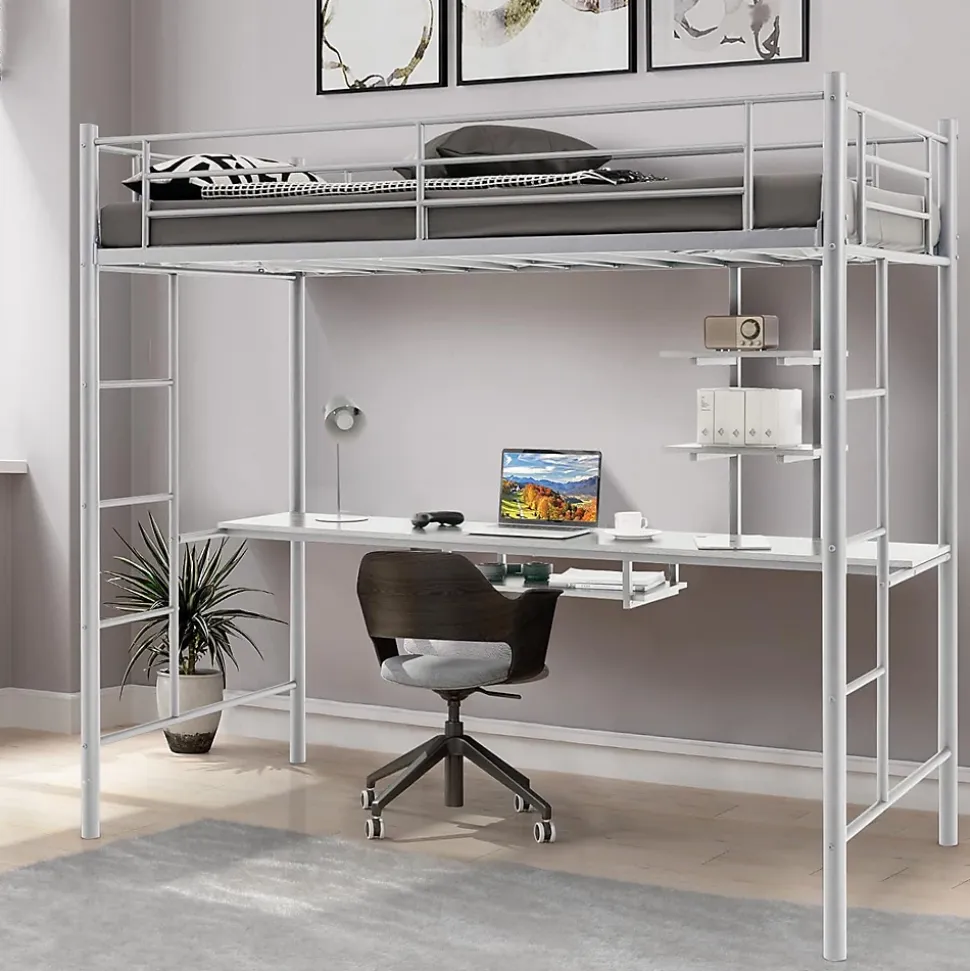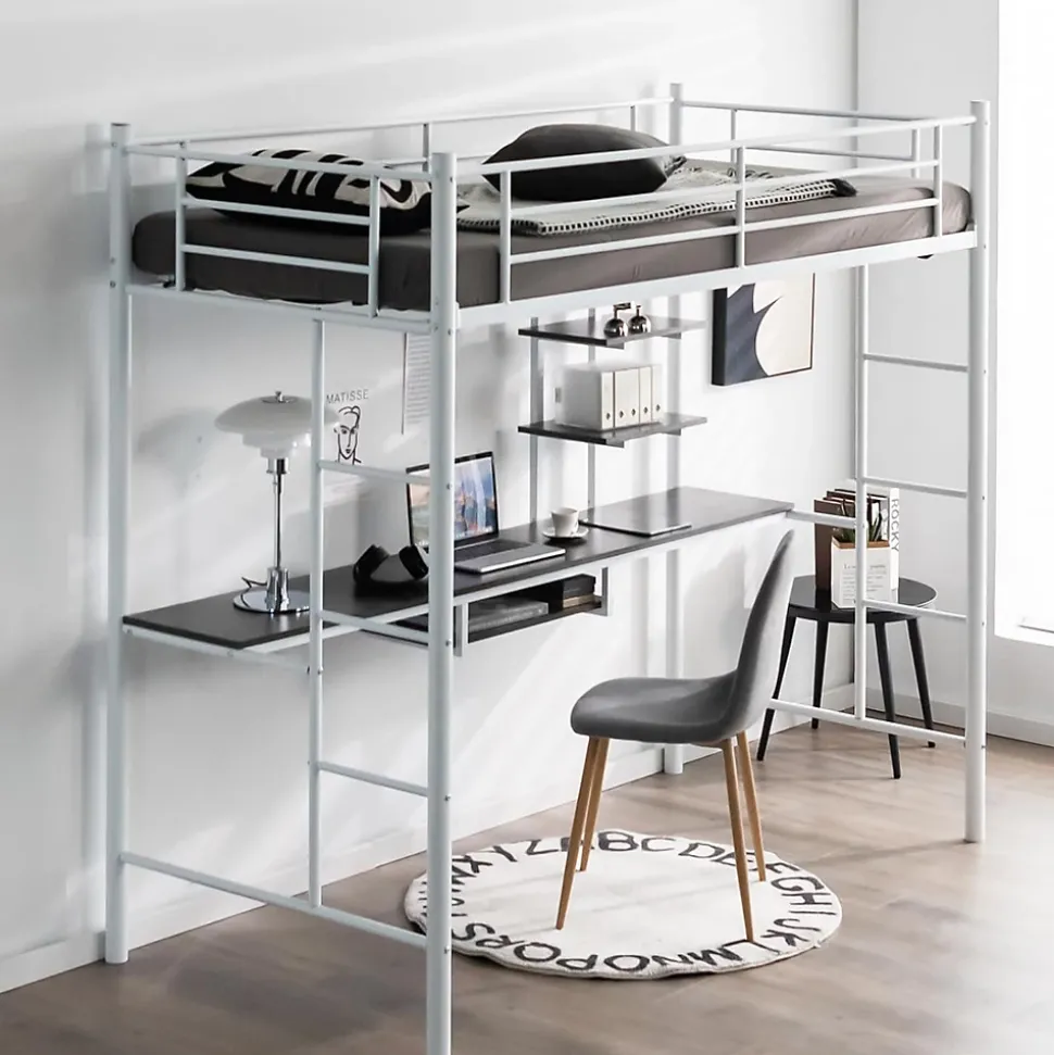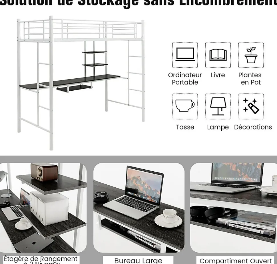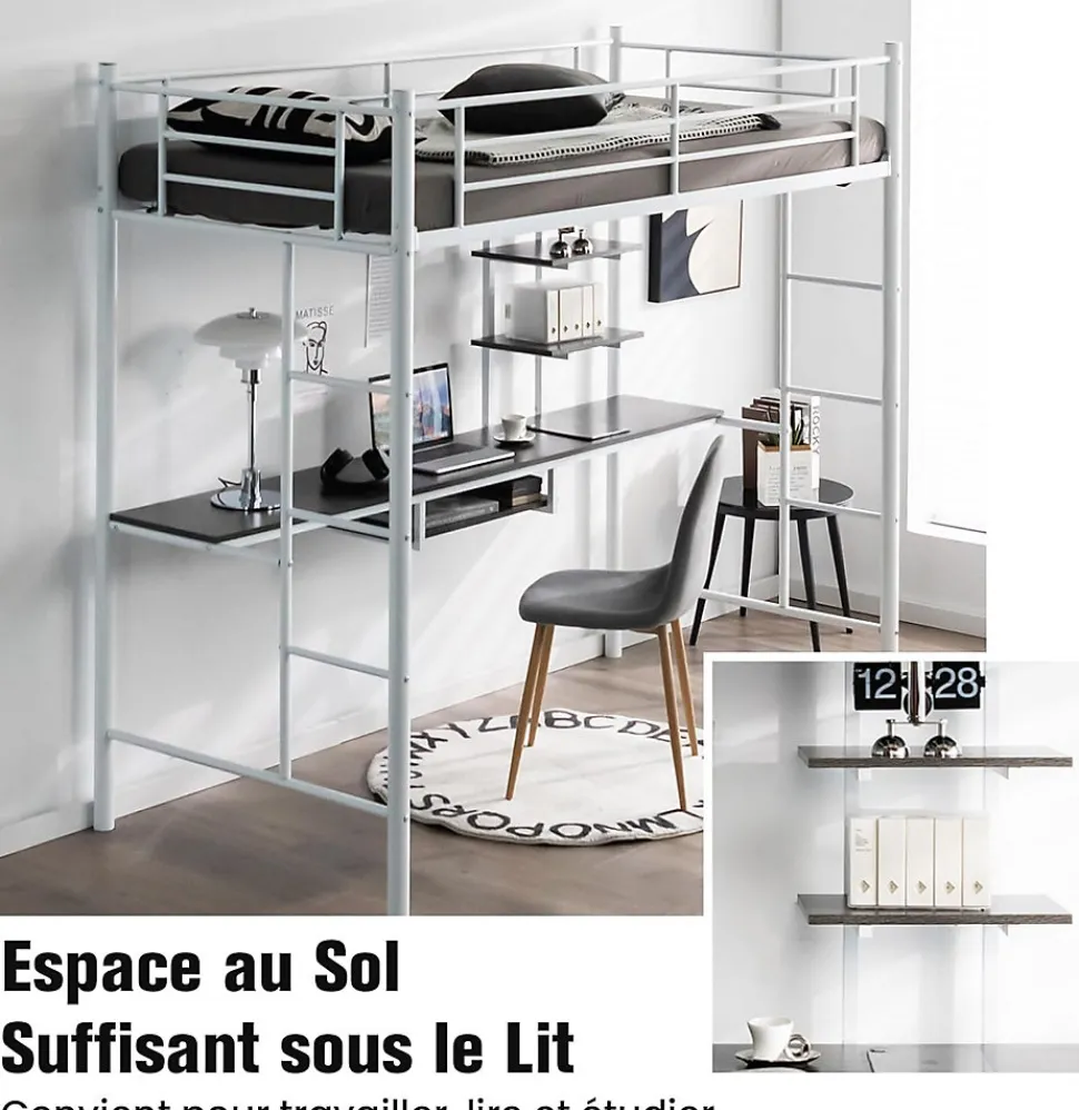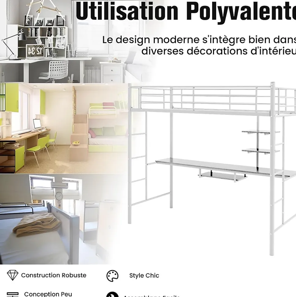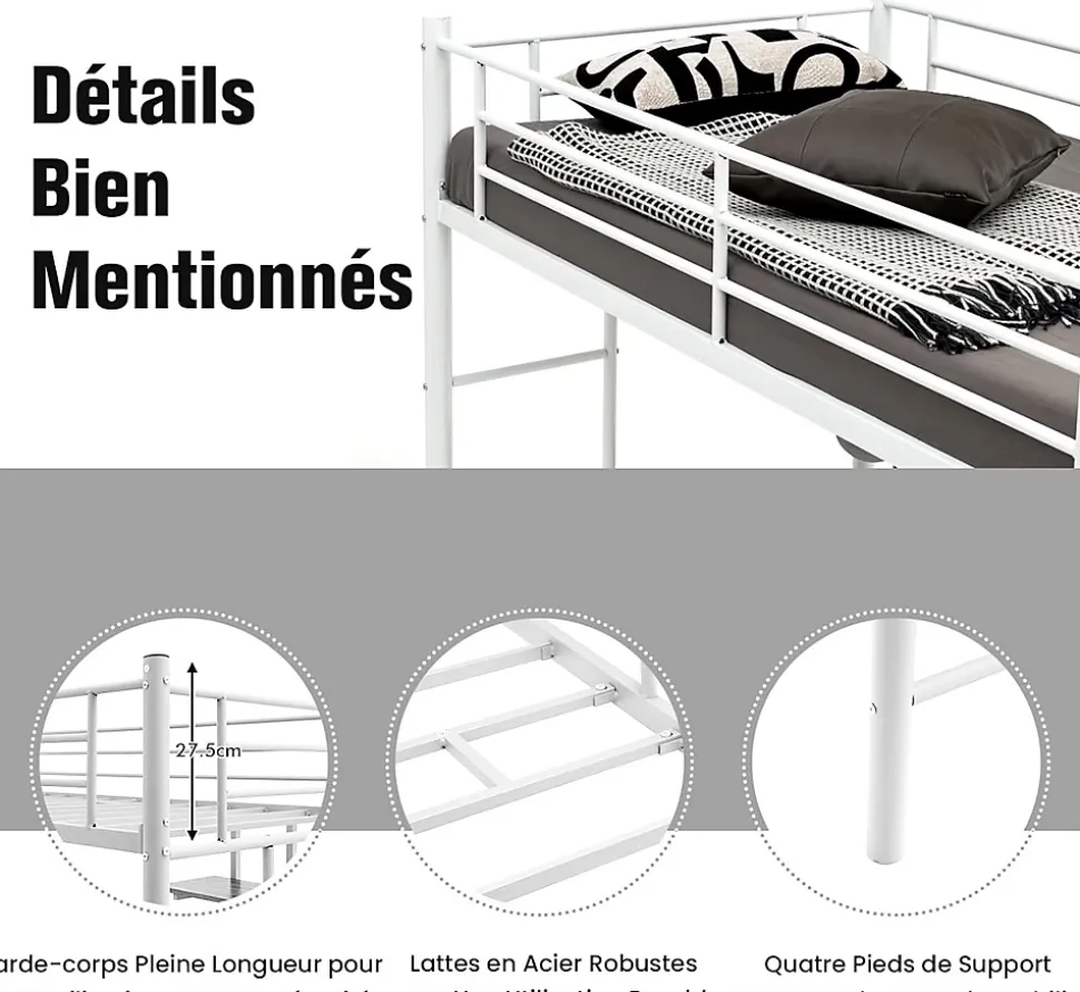 Ce lit mezzanine en métal avec bureau constitue la solution parfaite pour maximiser votre espace limité, idéal pour créer un espace supplémentaire pour que votre enfant puisse étudier, travailler et jouer. La construction en acier solide est construite pour durer et assure une meilleure stabilité pour une forte capacité de charge. Ce lit superposé en métal est parfait pour votre chambre, votre dortoir et votre petit appartement.