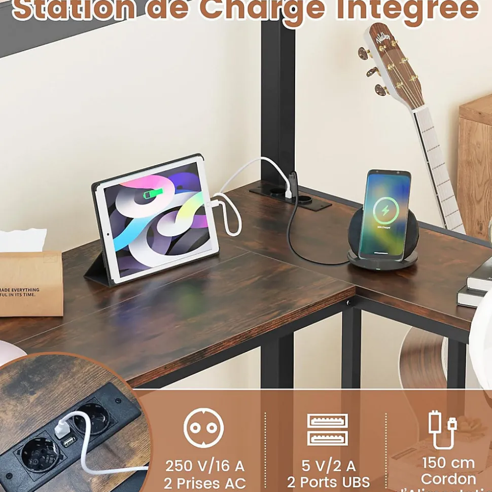 - Lit Efficace et Confortable : Ce lit mezzanine allie efficacité et confort, offrant un bureau d’étude en L ingénieusement conçu et une station de charge (2 prises AC et 2 ports USB) sous le lit. Cette configuration offre une commodité ultime pour étudier et travailler, garantissant que tous vos appareils soient toujours chargés.
