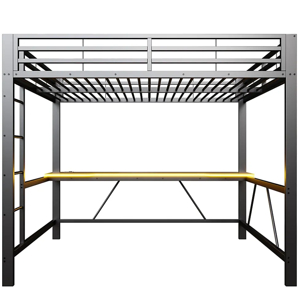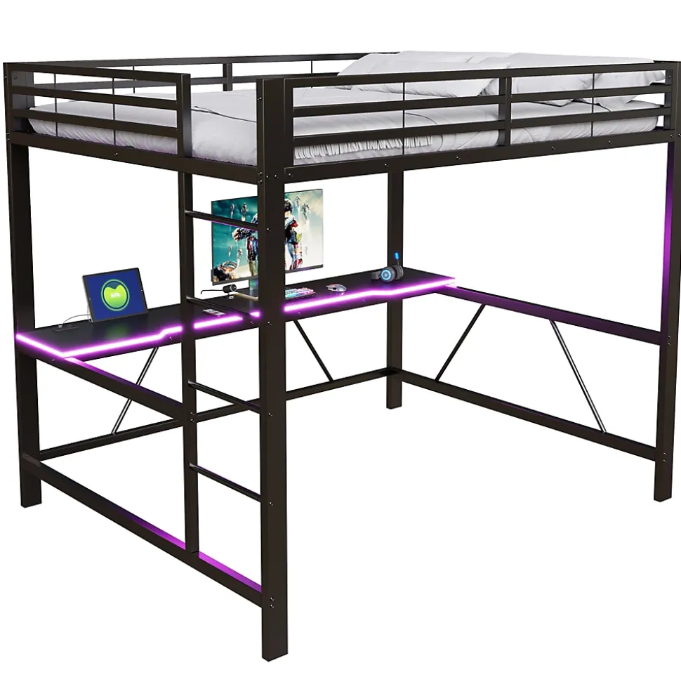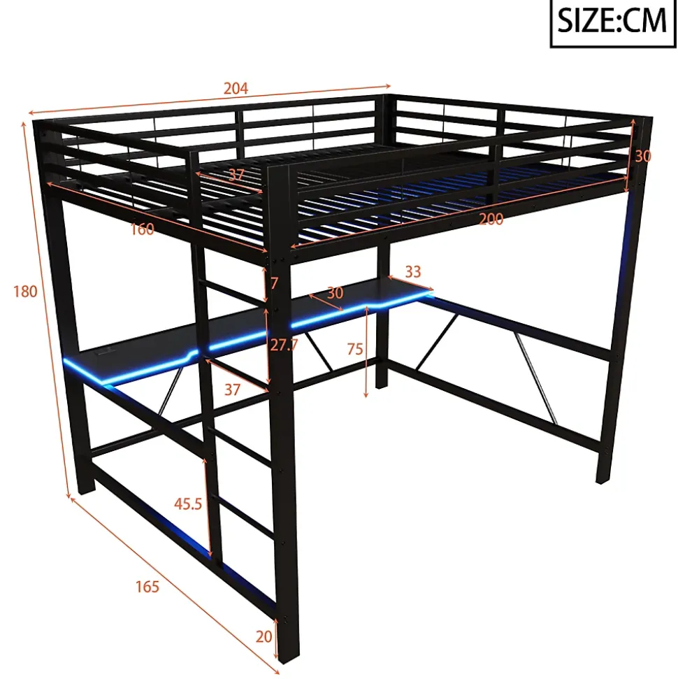 •【Lit mezzanine avec bureau intégré】Ce lit mezzanine est équipé d’un bureau intégré et d’un éclairage LED. L’espace sous le lit peut être astucieusement transformé en coin bureau, en coin lecture ou en atelier créatif.•【Sécurité garantie】Les barrières de sécurité surélevées autour du lit supérieur empêchent les chutes lors des changements de position. Vous bénéficiez ainsi d’un espace sûr et confortable.•【Lumières LED multicolores】Ce lit mezzanine est doté de lumières LED multicolores, créant une ambiance féérique dans votre chambre et s’intégrant parfaitement aux petits espaces.•【Résistant et robuste】La structure du lit est entièrement en métal, garantissant une utilisation durable. Le grand bureau est fabriqué en MDF épais, offrant une grande capacité de charge et une excellente durabilité.•【Facile à assembler】Des instructions détaillées et des pièces complètes sont disponibles pour vous aider à réaliser l’assemblage rapidement.