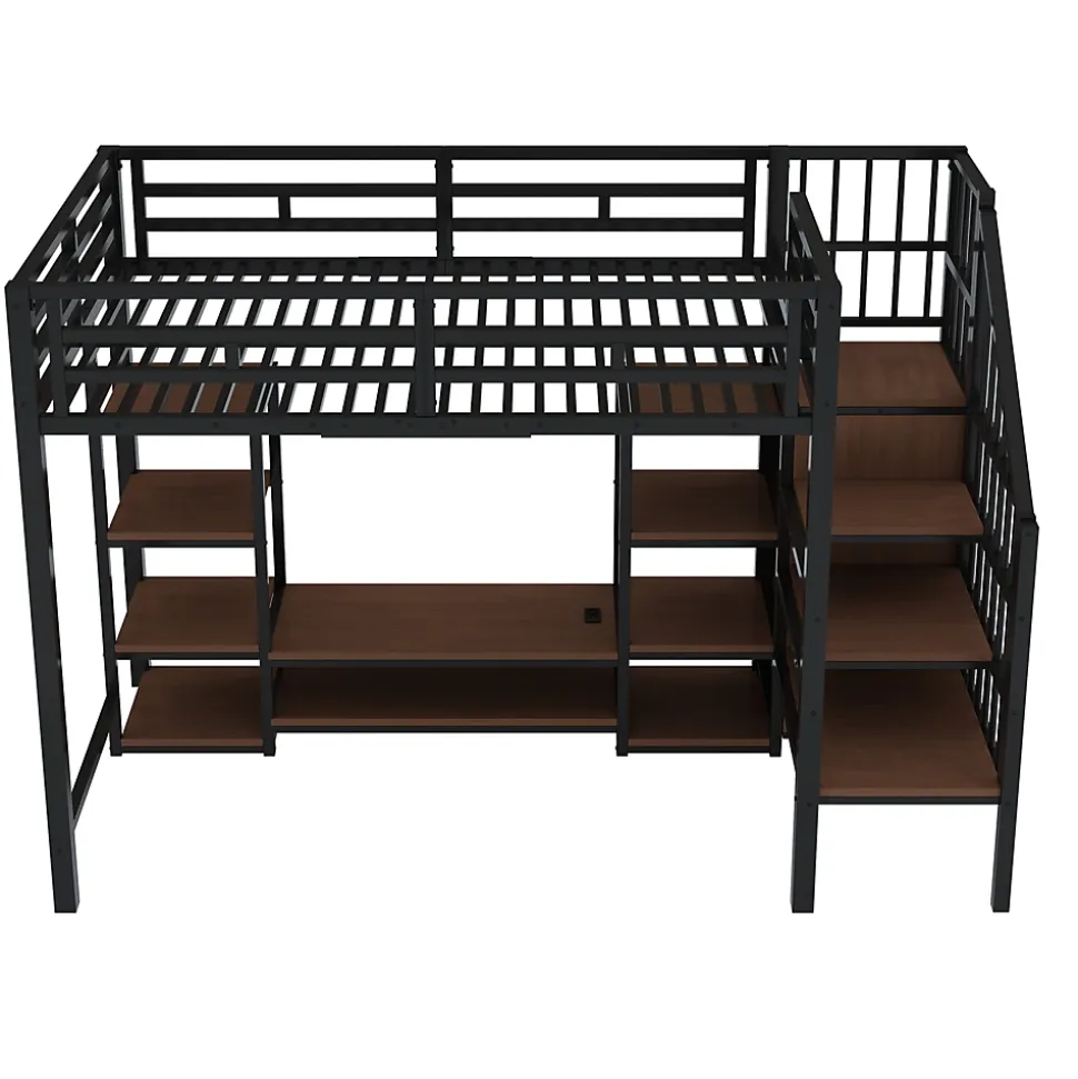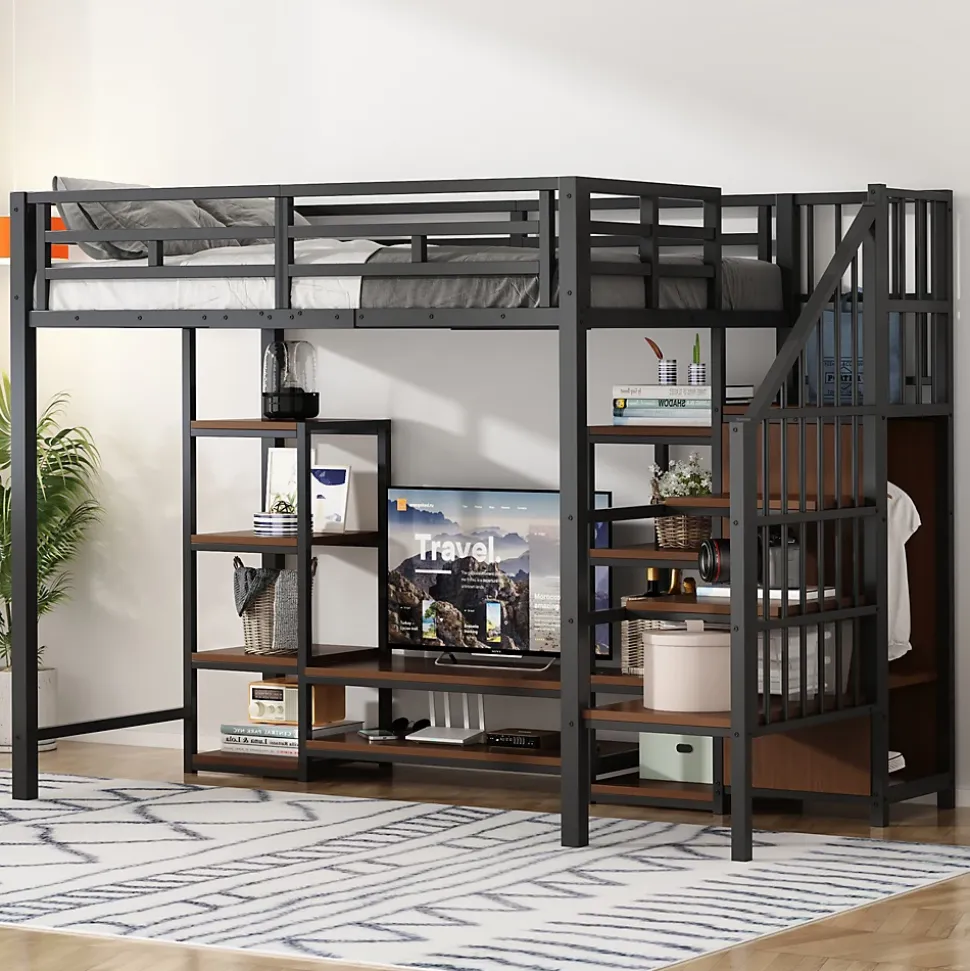 - 【Mobilier multifonction】 Ce lit mezzanine est équipé d’un support TV intégré, permettant d’installer facilement un téléviseur et d’autres appareils multimédias. Cela combine confort, rangement et espace de divertissement, tout en optimisant votre espace de vie.