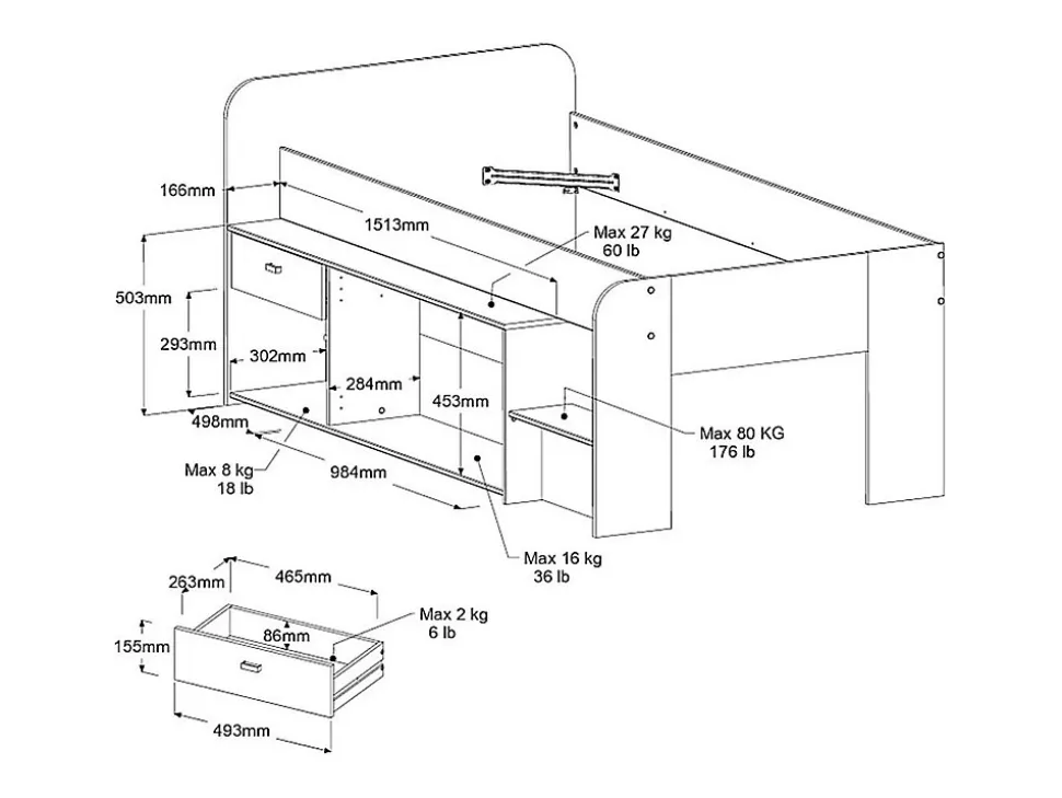 Optimisez l’espace de la chambre avec le lit mi-hauteur LUNOBI. Conçu pour allier fonctionnalité et design, il offre une solution ingénieuse pour les espaces où chaque mètre compte. Son format pratique en 90×190 cm ou 90×200 cm s’adapte facilement à différentes configurations, tout en préservant une belle harmonie visuelle. Sous son couchage surélevé, le lit LUNOBI intègre un tiroir et un placard fermé, parfaits pour ranger jouets, vêtements ou linge de lit. Cette conception astucieuse transforme l’espace perdu en zone de rangement accessible, favorisant un intérieur ordonné et apaisant. Sa structure en panneaux mélaminés confère à l’ensemble une surface lisse, facile à entretenir et résistante à l’usage quotidien. Le design moderne du LUNOBI s’exprime à travers des lignes sobres et équilibrées, s’accordant aisément avec différents univers de décoration, du plus épuré au plus chaleureux. Pratique et esthétique, ce lit mi-hauteur accompagne les enfants comme les adolescents dans un cadre fonctionnel et apaisant, propice au repos comme aux moments de jeu ou de lecture. Avec le lit LUNOBI, créez un espace nuit bien pensé, où le confort rencontre la simplicité d’un design contemporain.Caractéristiques Couleur (nuance) : Beige Matière (précision) : Panneau de particule Finition : Mélaminé Taille (couchage) : 90 x 190 cm, 90 x 200 cm Nombre de places : 1 place Sans matelas Sans sommier Type de rangement : 1 tiroir, 1 niche, Placard Nombre de placards : 1 Tiroir coulissant Gamme : Good for Planet Produit exclusif Produit : PEFC, Fabriqué en France À monter soi-mêmeDimensions Longueur : 110 cm Hauteur : 90 cm Profondeur : 203 cm Hauteur de couchage : 42.9 cmLivraisonLors de la livraison, il est conseillé de vérifier que le bon nombre de colis a été livré.ColisColis n°1 : Longueur 212 cm, Largeur 40 cm, Hauteur 8 cm, Poids 25 kg. Colis n°2 : Longueur 122 cm, Largeur 97 cm, Hauteur 5 cm, Poids 26 kg.