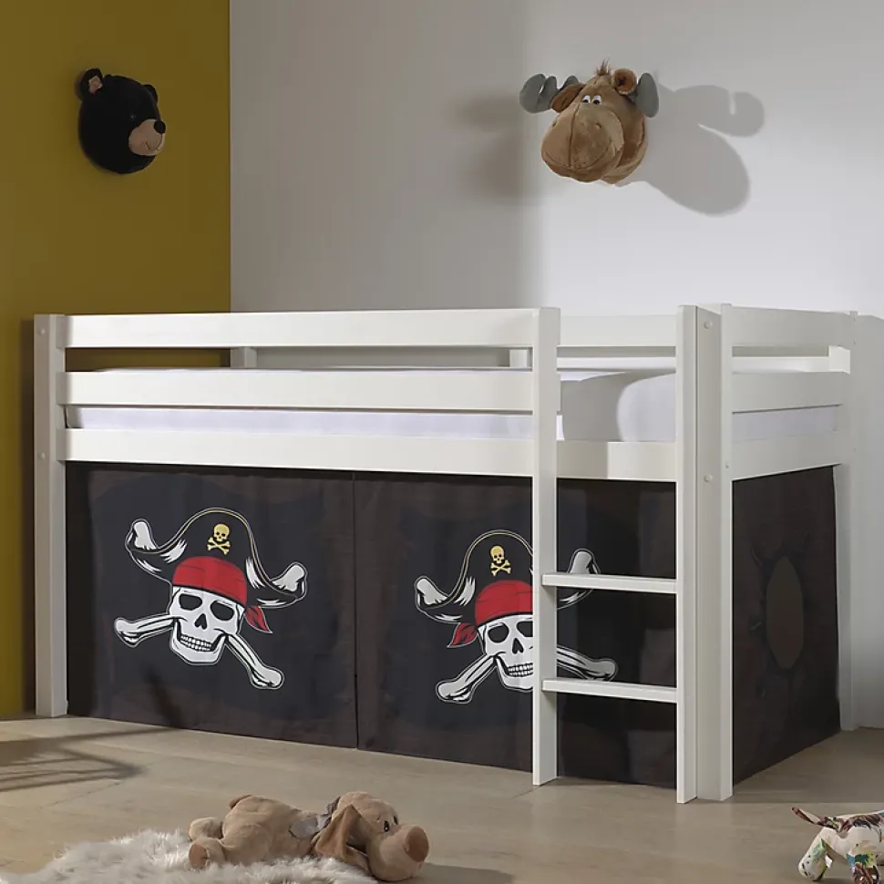 Lit Mi-Hauteur 90×200 sommier inclus housse Pirate Vipack Pino Blanc