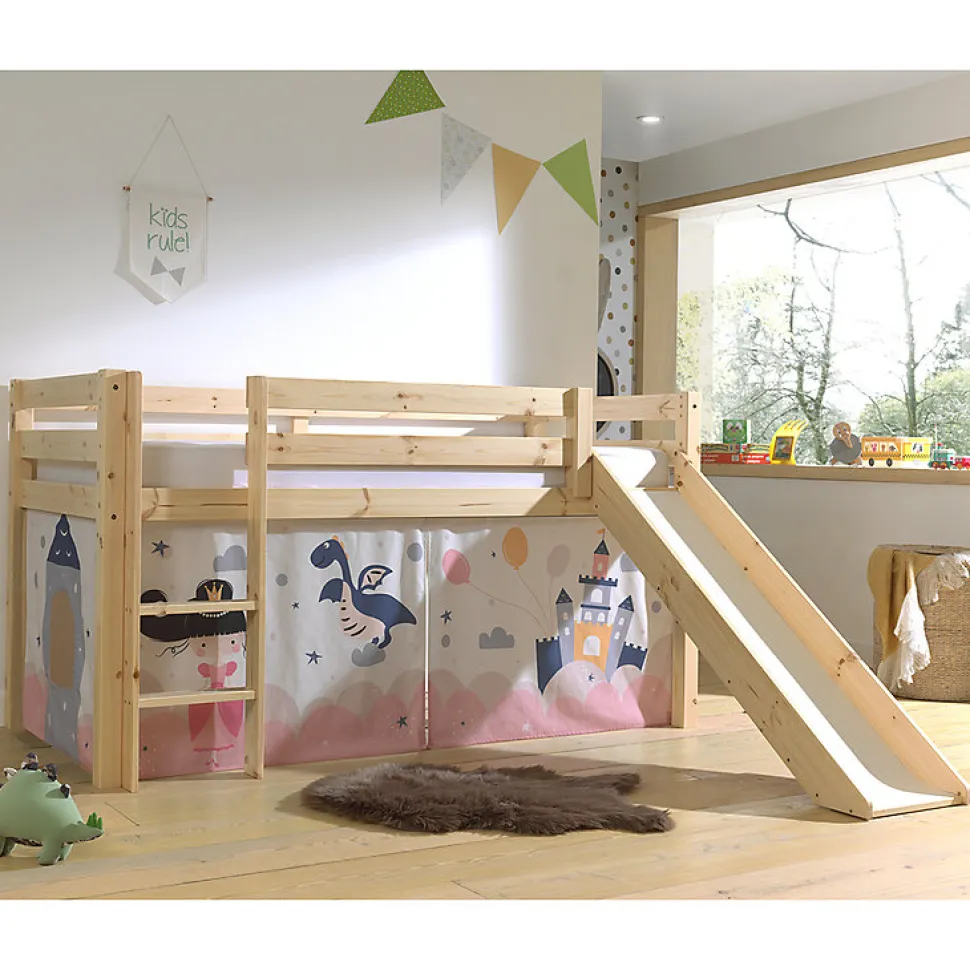 Lit Mi-Hauteur 90×200 Toboggan sommier inclus housse Fairy Vipack Pino Bois