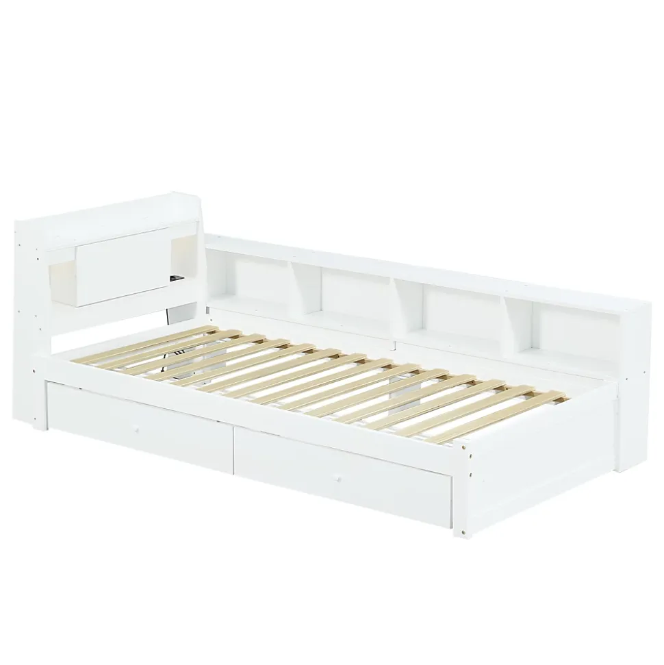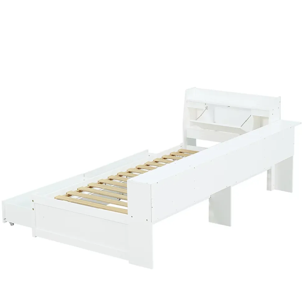 1. Genauen Mesure: Avec la taille de 90 x 200 cm, le lit simple offre suffisamment d’espace pour une personne et s’inscrit dans différentes dispositions de chambre.2. Matériaux stables: fabriqués en pin, contreplaqué et participation, le lit garantit une longue durée de vie et une capacité de chargement fiable.3. Design moderne et élégant: le cadre de lit blanc et simple apporte une atmosphère élégante dans votre chambre et s’adapte à différents styles d’ameublement.4. Jouez des fonctions de stockage: la tête de lit avec un compartiment de rangement et les placards latéraux ainsi que deux grands tiroirs offrent beaucoup d’espace de stockage pour organiser des objets personnels et garder la pièce bien rangée.5. Combinaison de confort et de fonctionnalités: ce lit unique augmente non seulement le confort de sommeil, mais a également une prise de charge, les propriétés pratiques et élégantes dont la mobilisation de toute l’atmosphère de votre chambre.6. Installation: les instructions détaillées et les pièces complètes peuvent vous aider à terminer l’assemblage. Le plaisir de l’installation vous fait encore plus apprécier le lit.Dimensions totales : 220,5x113x80 cmPoids total : 53 kgMatelas compatible (matelas non inclus) : 90×200 cm (épaisseur du matelas ≤ 12 cm)Capacité de charge : Lit : 120 kgCaractéristiques :Nom du produit : Lit en boisCouleur : BlancMatériau du cadre : Pin + Panneau de particules + MDFMatériau du sommier : ContreplaquéMéthode de montage : À monter soi-mêmeCertificat : OuiLa structure est-elle interchangeable de gauche à droite ? NonNombre de colis : 3Pays d’origine : ChineNote : Ce produit est livré en 3 colis, il est normal de recevoir les colis à des moments différents, veuillez patienter.