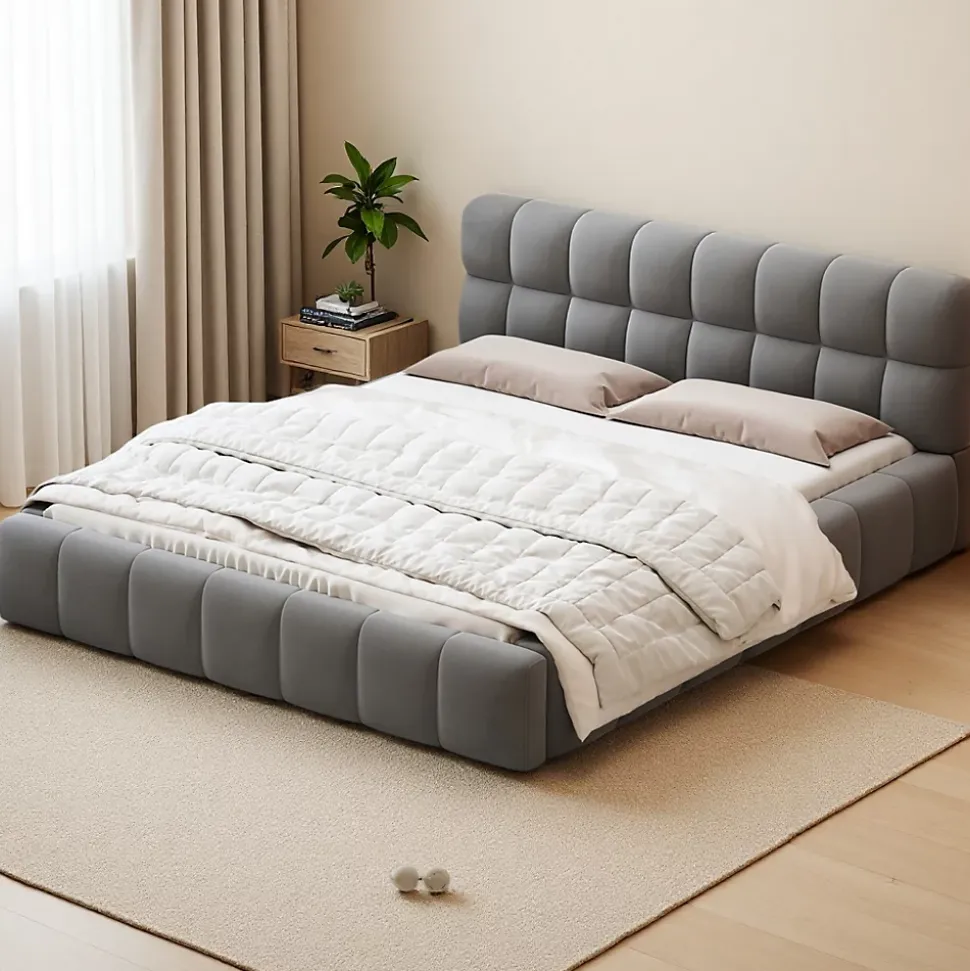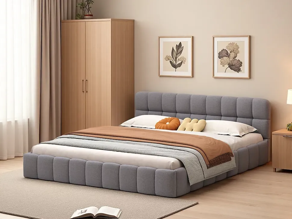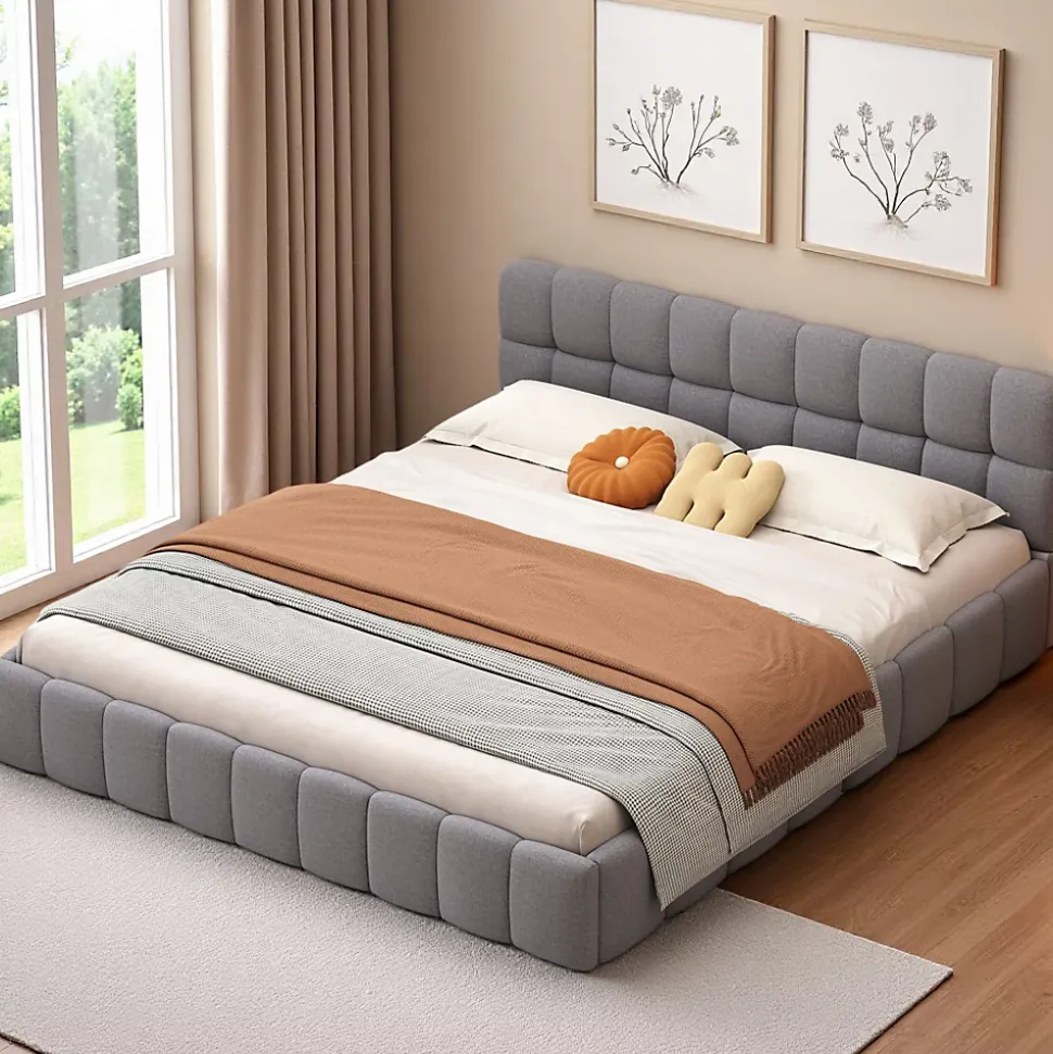 Description1. Matelas intégré au design élégant – La conception unique de ce lit capitonné crée un effet de matelas intégré, offrant un excellent maintien. Avec ses lignes simples et modernes et ses coloris tendance, ce lit double s’adapte facilement à différents styles d’intérieur.2. Tête de lit confortable – La tête de lit est rembourrée en mousse haute densité, assurant une bonne élasticité et un confort supérieur. Elle est idéale pour s’adosser et se détendre après une longue journée.3. Confort optimal – Entièrement recouvert d’une mousse épaisse et moelleuse, ce lit procure une sensation de douceur exceptionnelle. Revêtu d’un tissu en coton et lin de haute qualité, doux au toucher, respirant et résistant, il garantit un confort durable.4. Structure solide et stable – Fabriqué en panneaux de fibres et en aggloméré robustes, ce lit est équipé d’un sommier à lattes offrant un soutien fiable, avec une capacité de charge allant jusqu’à 300 kg.5. Montage facile – Toutes les pièces sont numérotées ; l’assemblage peut être effectué en suivant les instructions.Poids et dimensions :Dimensions hors tout : 213 x 170 x 60 cmDimensions détaillées : Voir le schémaNombre de colis : 2Poids total : 44 kgCharge maximale : 300 kgÉpaisseur de matelas recommandée : 22-27 cmDimensions : 160 x 200 cmCouleur : GrisMatériaux : Lin + Contreplaqué + MDFMontage : Montage complet/PartielPoids total du colis : 50 kgNombre de lattes : 12Matelas non inclus&Remarques&※ En raison de la mesure manuelle, un écart de 2 à 3 cm peut se produire.※ En raison de l’influence de la lumière du soleil et d’autres facteurs, il peut y avoir de légères différences de couleur.※ Ce produit sera expédié en 2 colis. Ils peuvent arriver à des moments différents. Veuillez patienter.※ Si vous avez des questions pendant l’installation, veuillez nous contacter dès que possible.