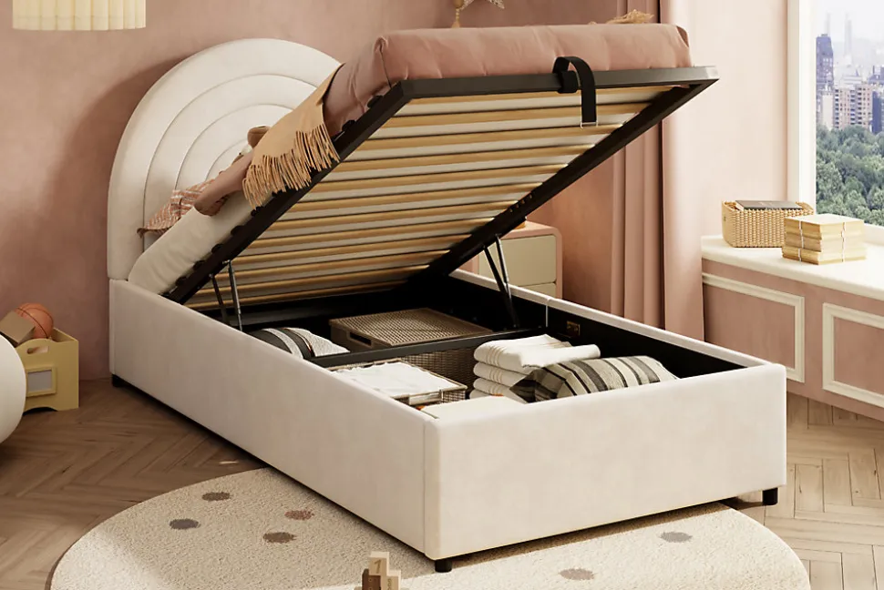Lit pratique et charmant avec espace de rangement hydraulique, conçu pour allier fonctionnalité et confort. Il suffit de soulever le matelas pour accéder à un compartiment spacieux, idéal pour ranger jouets, affaires ou autres objets, contribuant ainsi à maintenir la pièce organisée. La matelas intégré assure qu’il ne glisse pas, offrant une expérience de sommeil stable et agréable. Des rembourrages silencieux au pied du lit minimisent les bruits nocturnes tout en protégeant le sol contre les rayures ou les dommages. Son design vif et séduisant, aux couleurs éclatantes, apporte une touche ludique et chaleureuse à la chambre. Le dossier rembourré assure un confort optimal et une sécurité accrue, réduisant les risques de chocs et offrant un soutien agréable. Ce lit allie ainsi praticité, esthétique et confort dans un style harmonieux et accueillant.