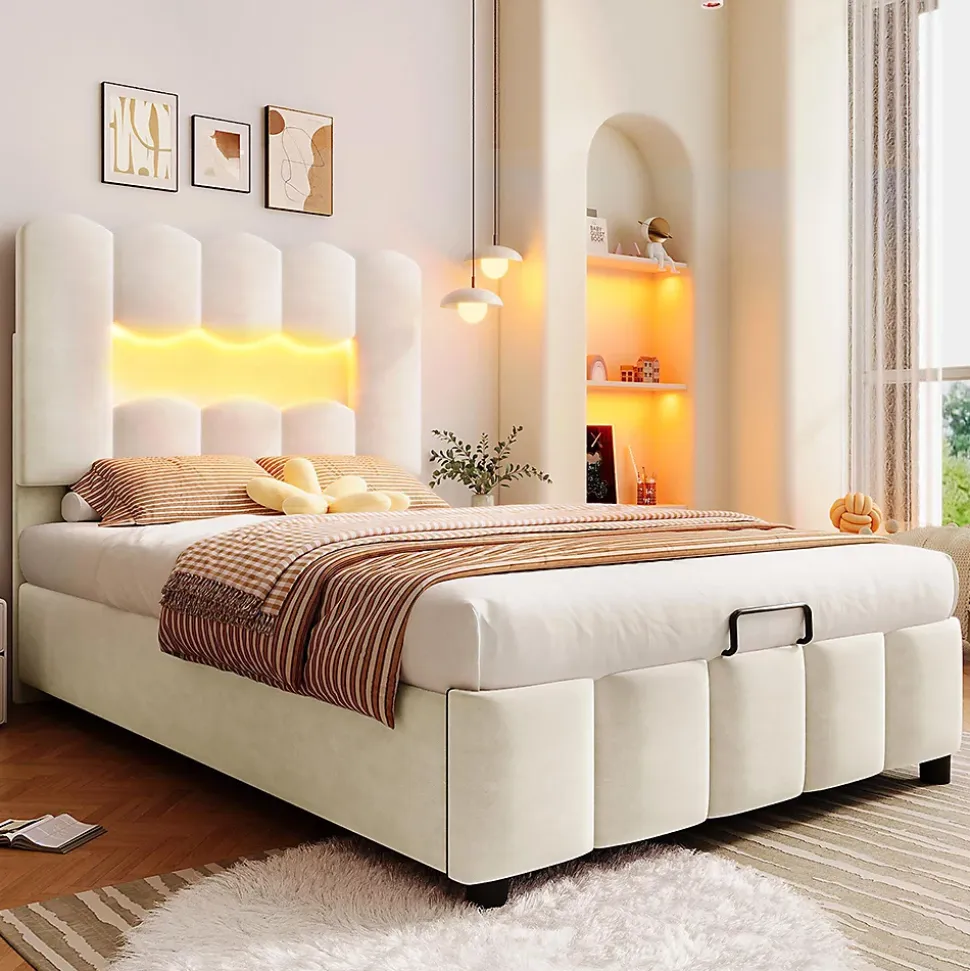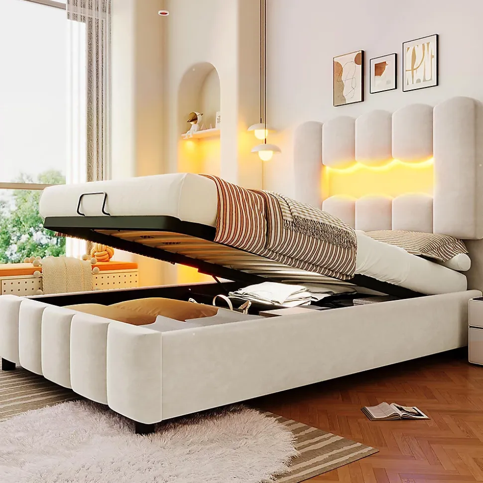 - Espace de rangement extra-large : équipé d’un espace de rangement hydraulique facile à ouvrir, il offre un espace de rangement extra-large où vous pouvez ranger vos vêtements de saison, votre linge de lit et d’autres articles afin de garder votre chambre à coucher propre et bien rangée.