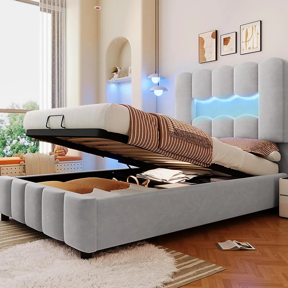 - Espace de rangement extra-large : équipé d’un espace de rangement hydraulique facile à ouvrir, il offre un espace de rangement extra-large où vous pouvez ranger vos vêtements de saison, votre linge de lit et d’autres articles afin de garder votre chambre à coucher propre et bien rangée.