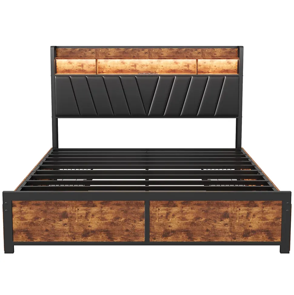 Description du produitCe lit Double de fortuna Lai est le choix parfait.Fabriquée en PU et en mousse, la tête de lit souple sert de dossier confortable pour lire ou regarder la télévision. La tête de lit est équipée d’un port USB pour charger facilement les produits électroniques. L’éclairage LED offre une lumière agréable et vous pouvez facilement régler la luminosité et la couleur à l’aide de la télécommande. 4 tiroirs sur roulettes offrent un espace de rangement pour les oreillers, les couvertures et plus encore. Les tiroirs peuvent être facilement retirés des deux côtés grâce aux roulettes situées sous le lit double. Il y a une étagère de rangement au dessus de la tête de lit, ce qui est très pratique. Vous pouvez y mettre différentes choses. Vous pouvez placer des livres ou des magazines sur l’étagère pour pouvoir les lire confortablement au lit. Vous pouvez également ranger votre téléphone portable, votre réveil ou d’autres petits appareils électroniques sur l’étagère afin qu’ils soient toujours disponibles lorsque vous en avez besoin. Grâce à des instructions claires, vous pouvez l’installer rapidement et facilement.Spécifications du produit :- Dimensions (LxPxH) : 217 x 180 x 112.5 cm- Matelas applicable : 180 x 200 cm (hors matelas)- Épaisseur du matelas adaptée : 25 cm (hors matelas)- Charge maximale : 300 kg- Matière : bois, métalContenu de la livraison :- 1 x lit- 1 x DescriptionRemarque – Le cadre de lit avec sommier à lattes est facile à assembler selon les instructions de montage fournies.